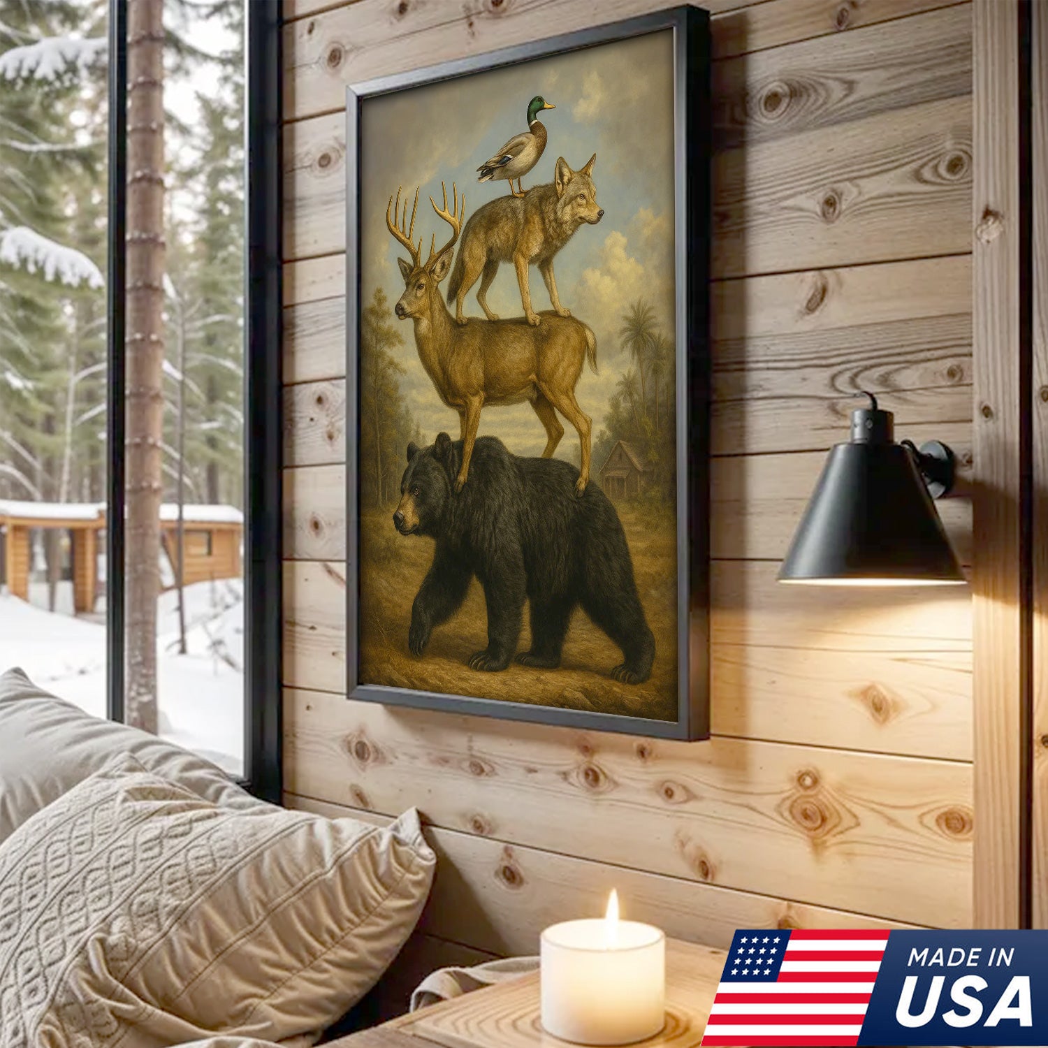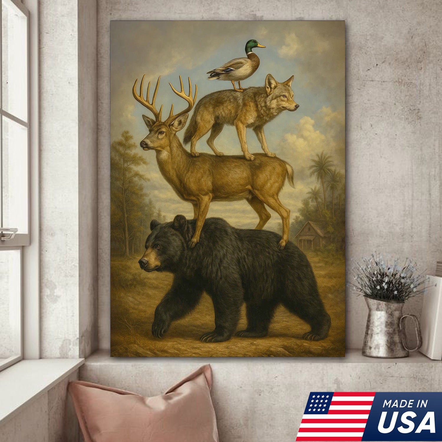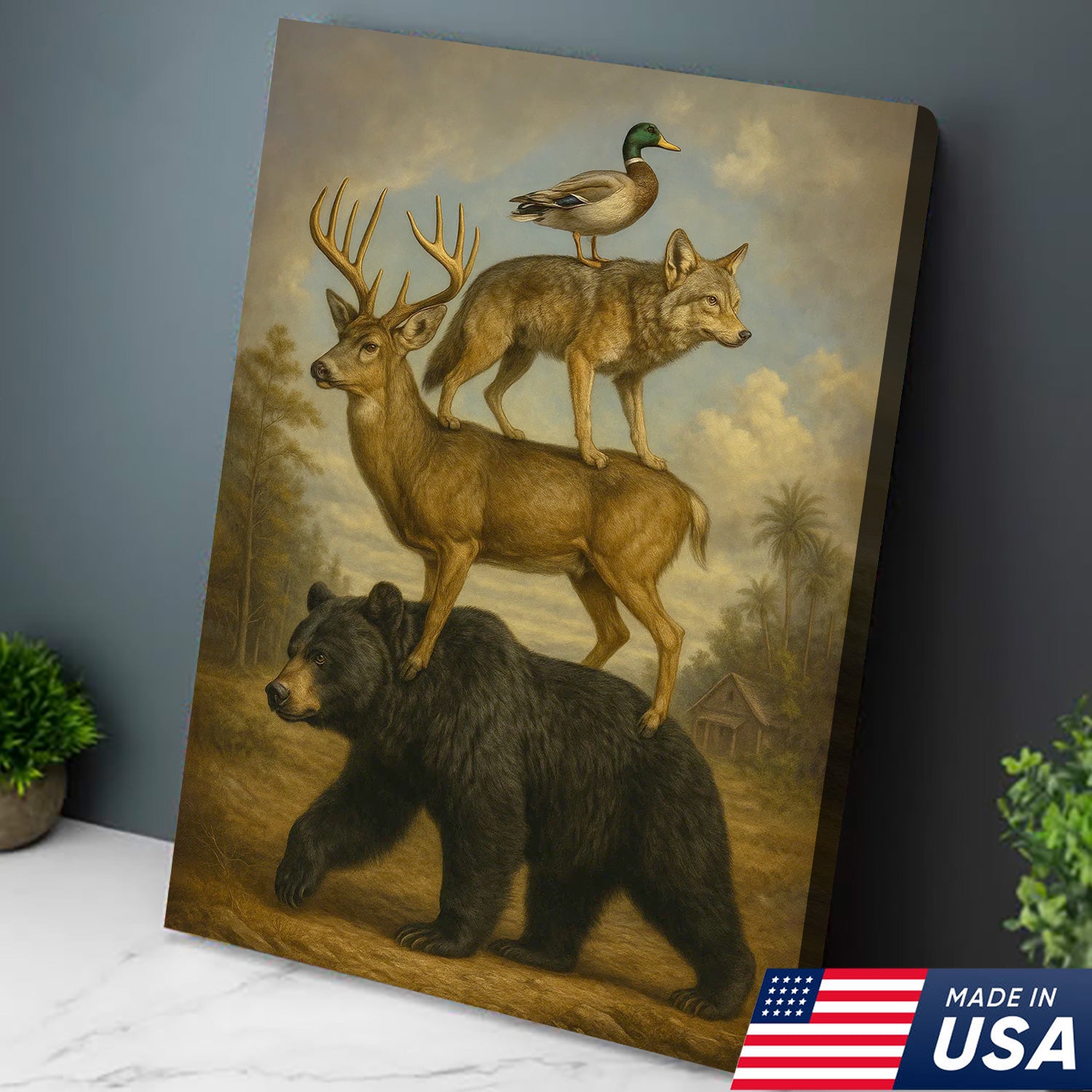 Epic Wildlife Stacking Canvas Wall Art – Bear, Deer, Coyote & Duck – Rustic Hunting Cabin Decor
