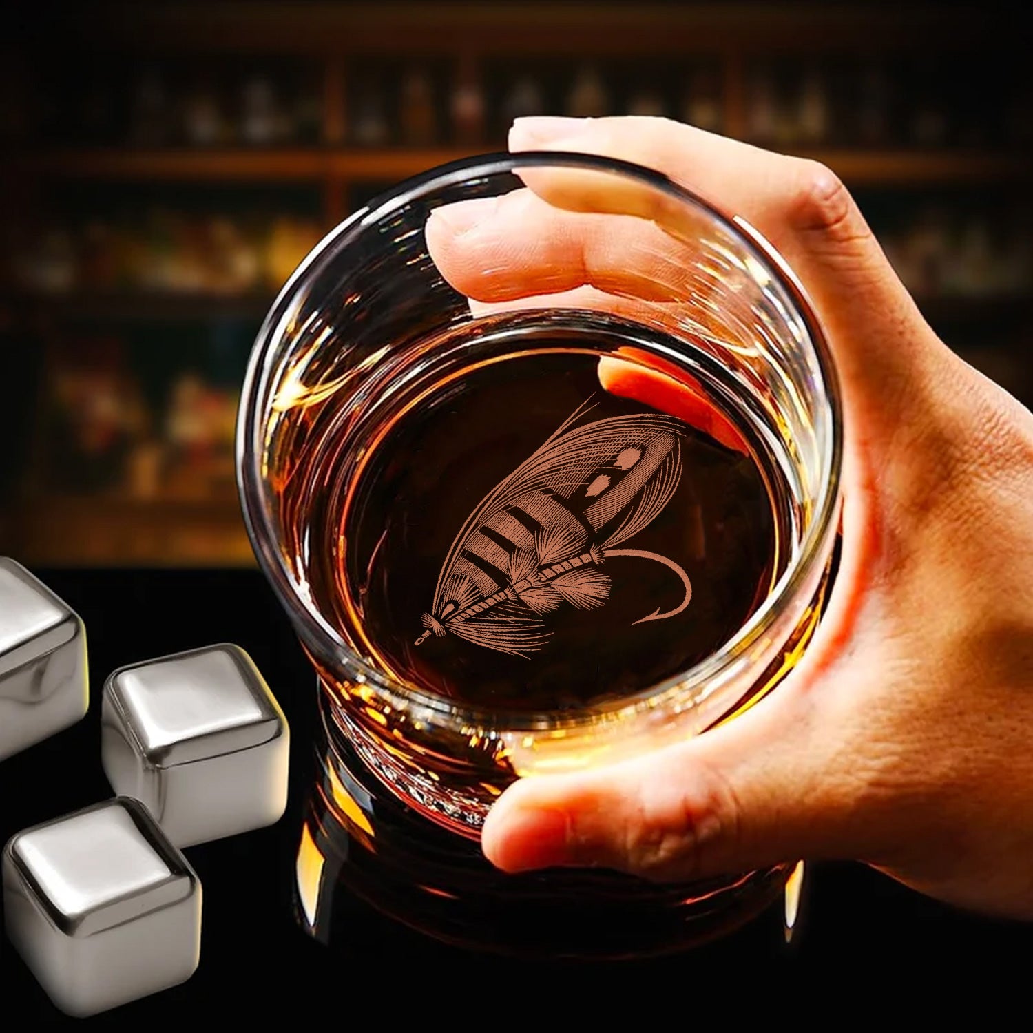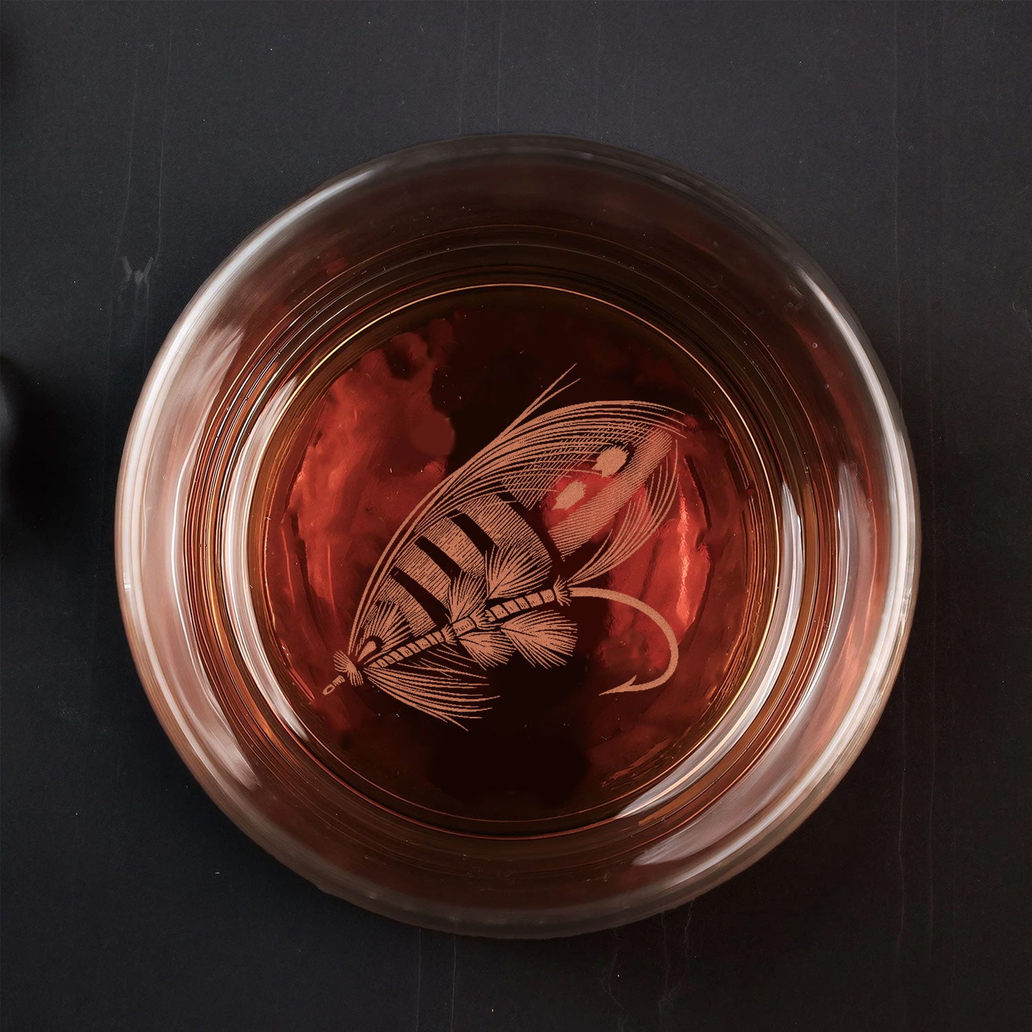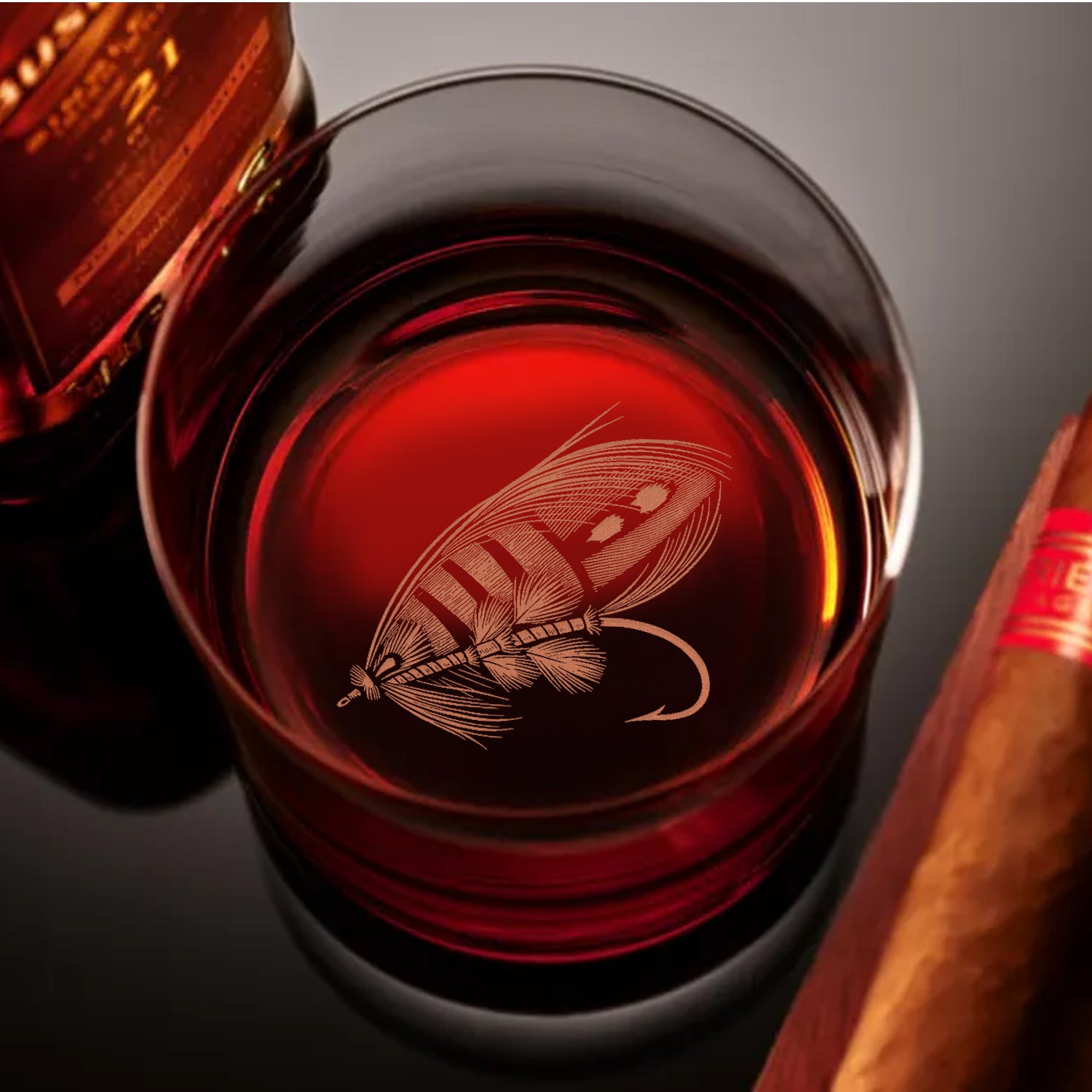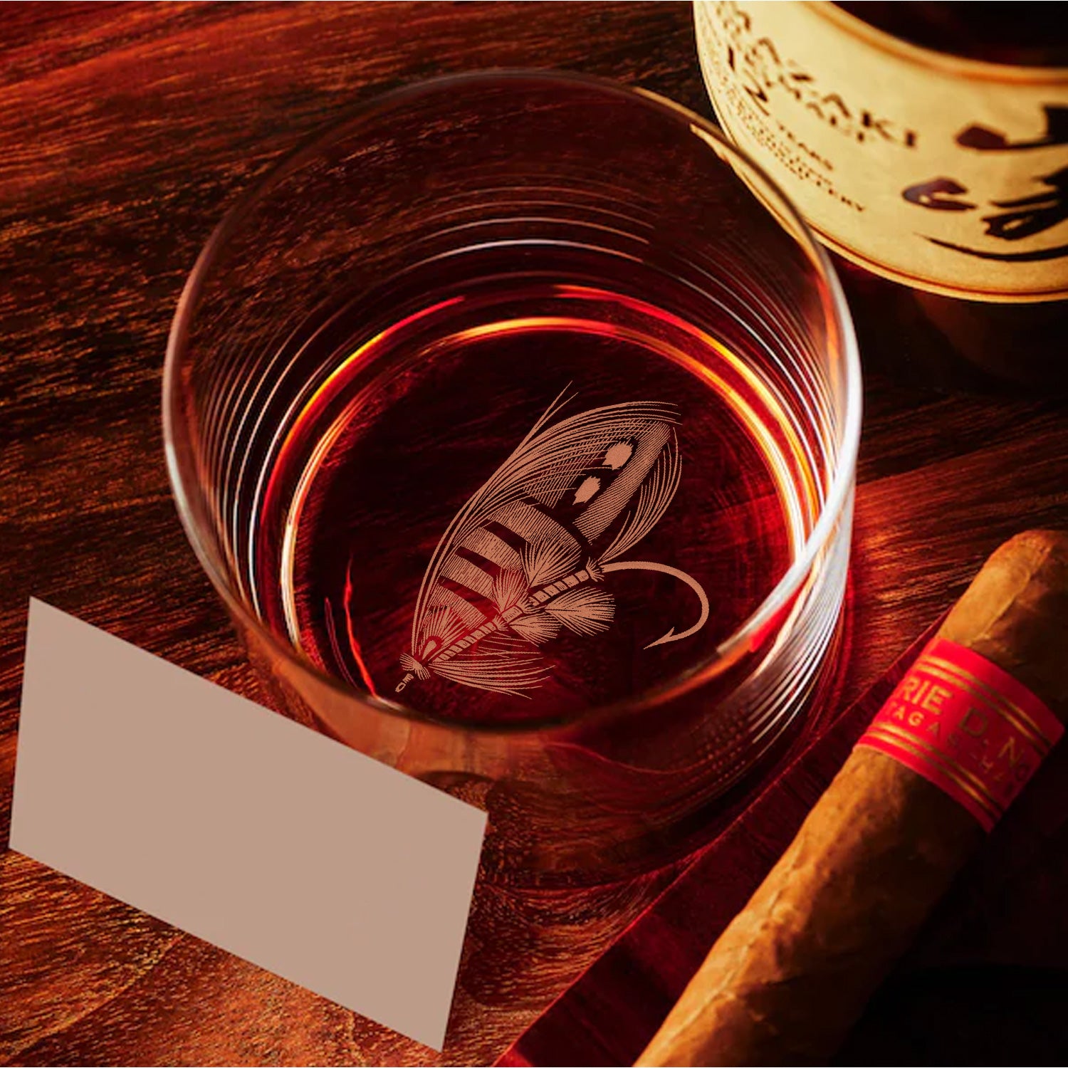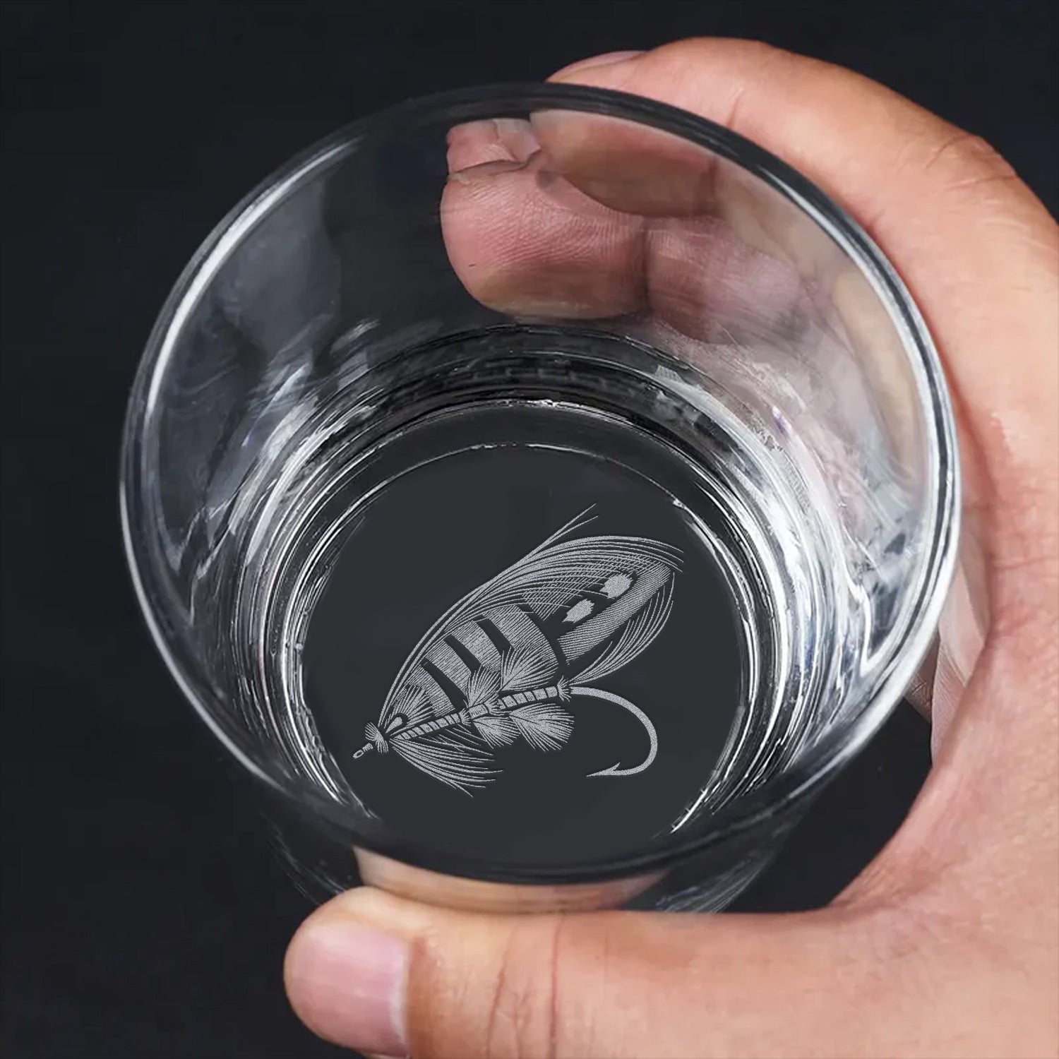 Fly Fishing Engraved Whiskey Glass – Whiskey Glass for Men, Fishermen & Drinking Lovers