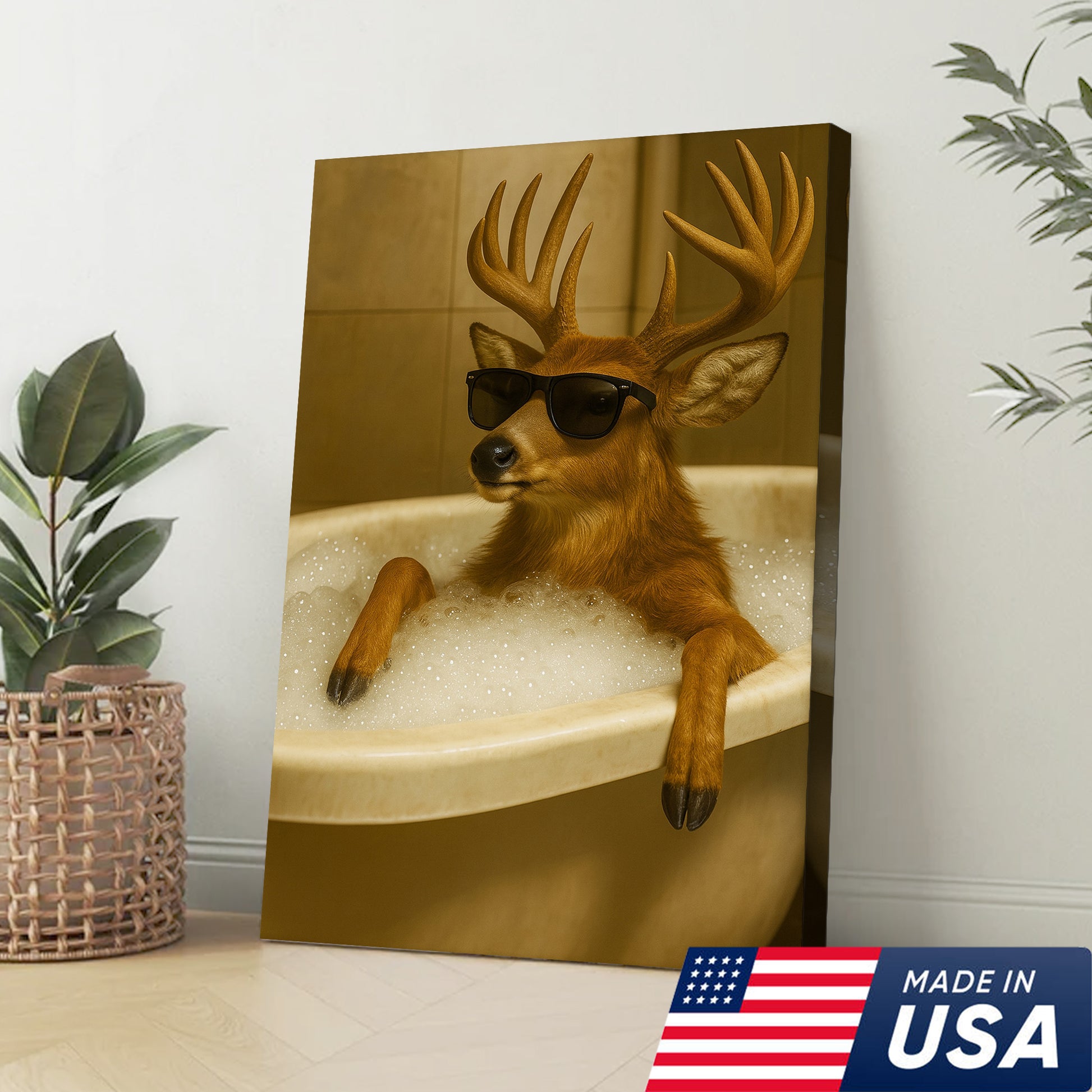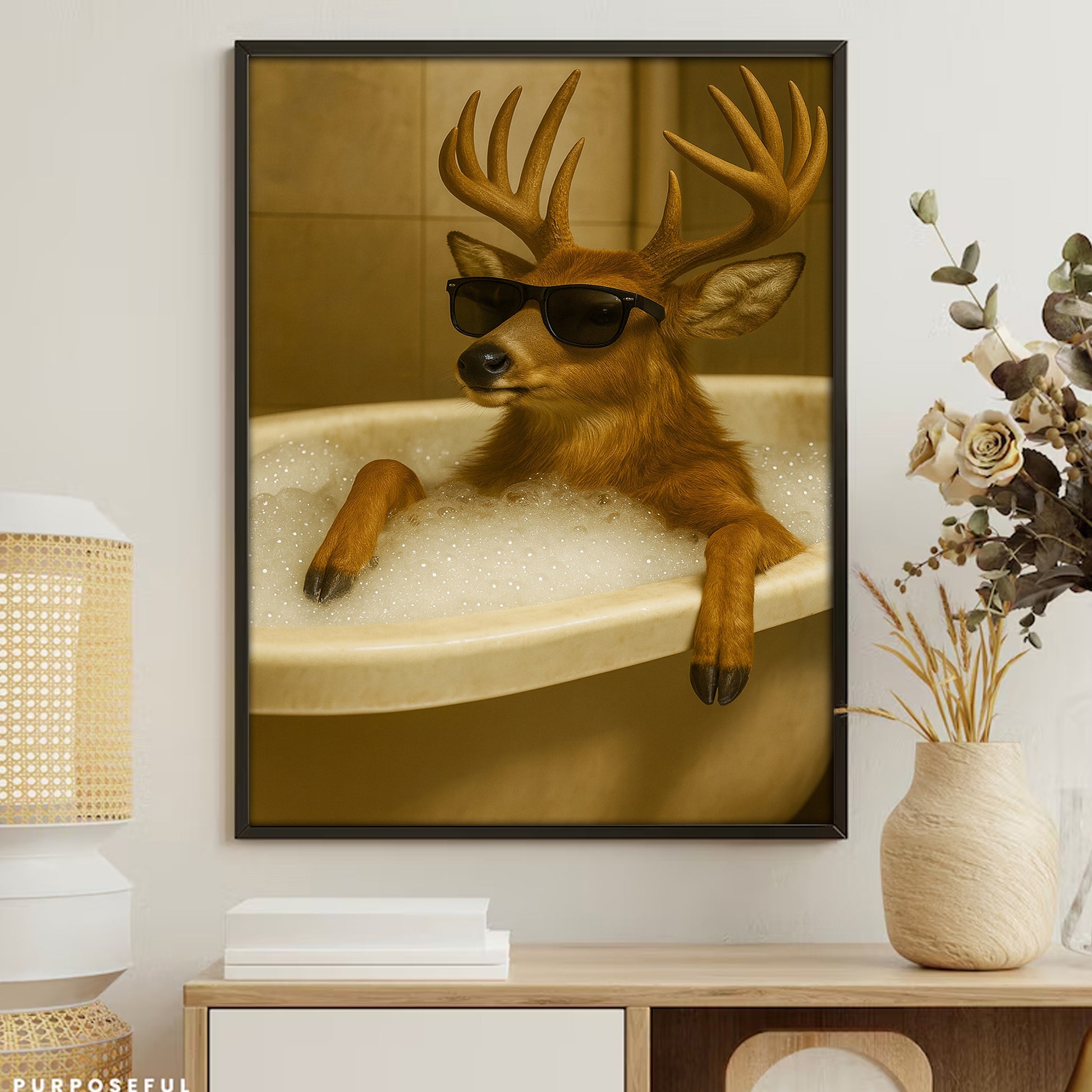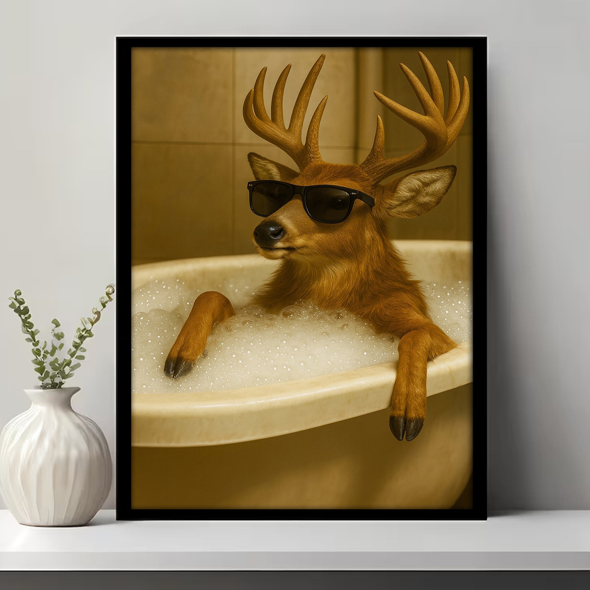 Funny Deer Wall Art – Cool Buck in Bathtub Poster for Hunters & Rustic Cabin Decor