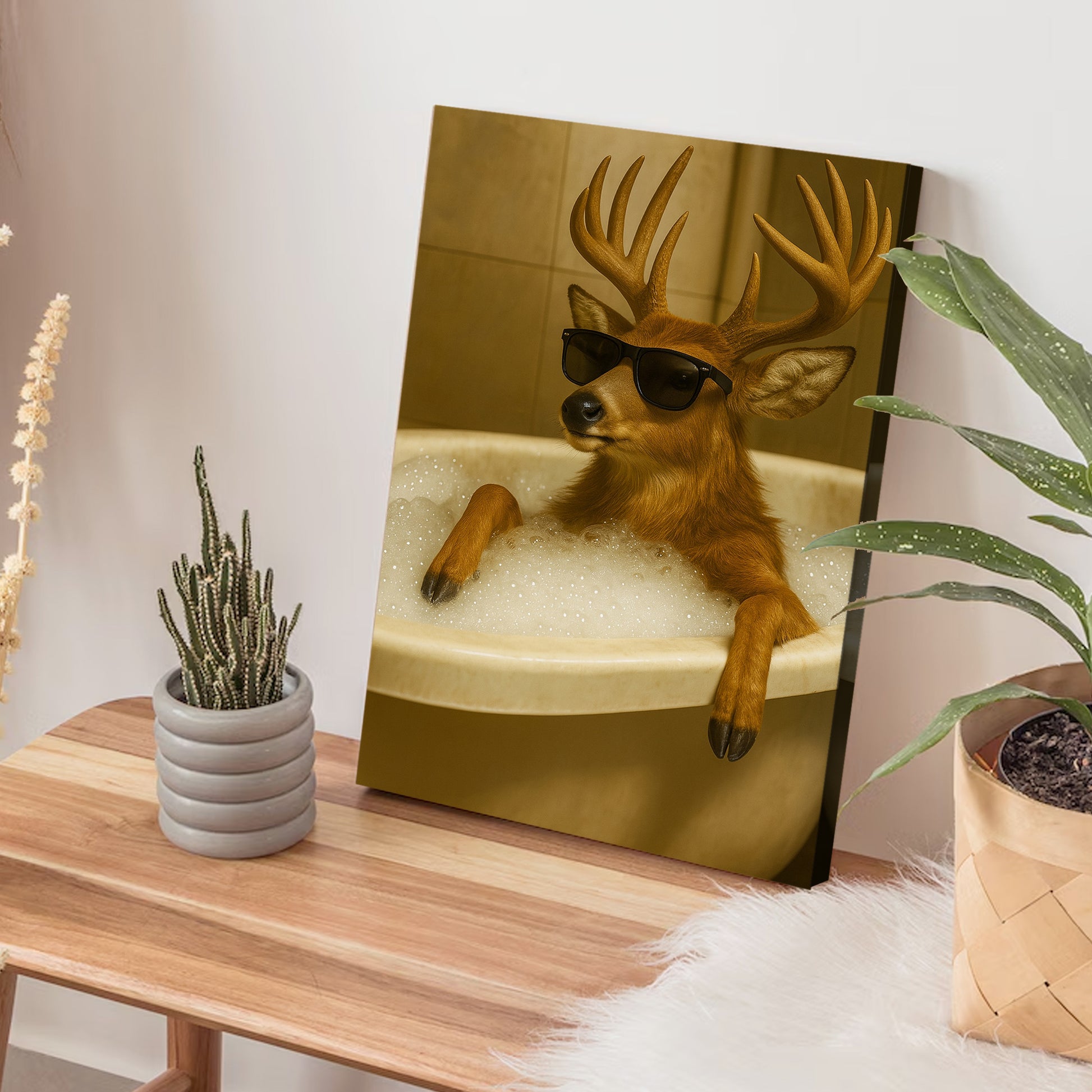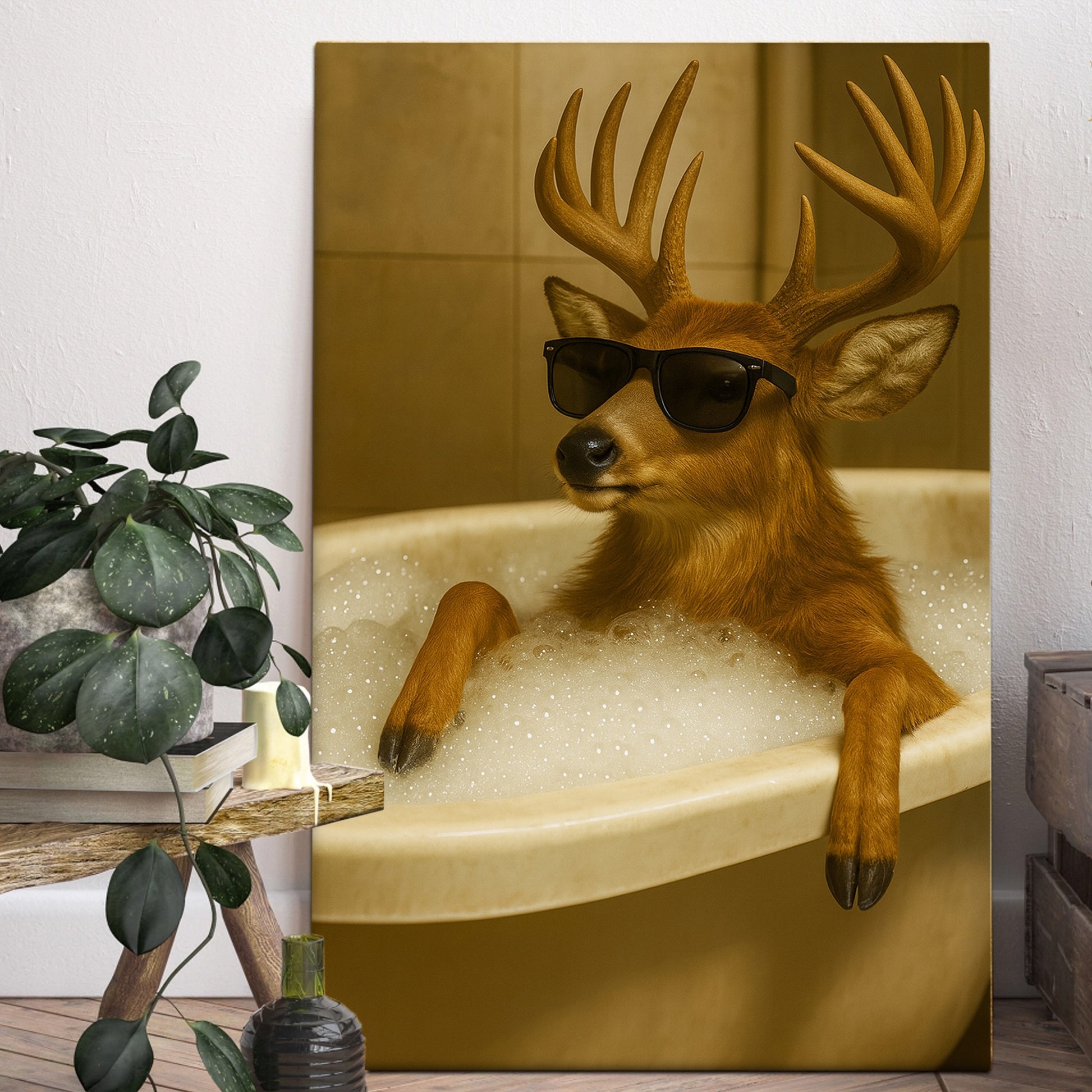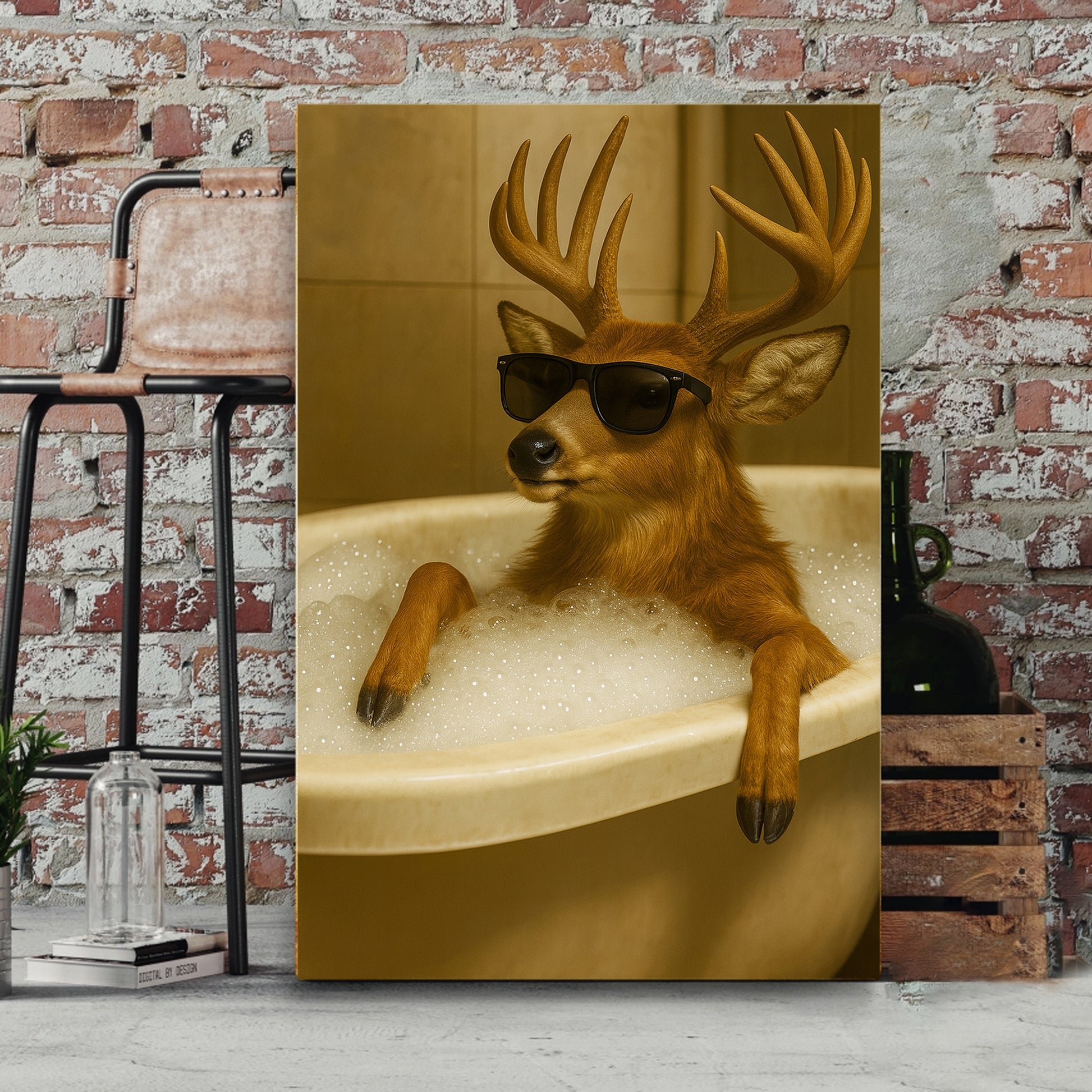 Funny Deer Wall Art – Cool Buck in Bathtub Poster for Hunters & Rustic Cabin Decor