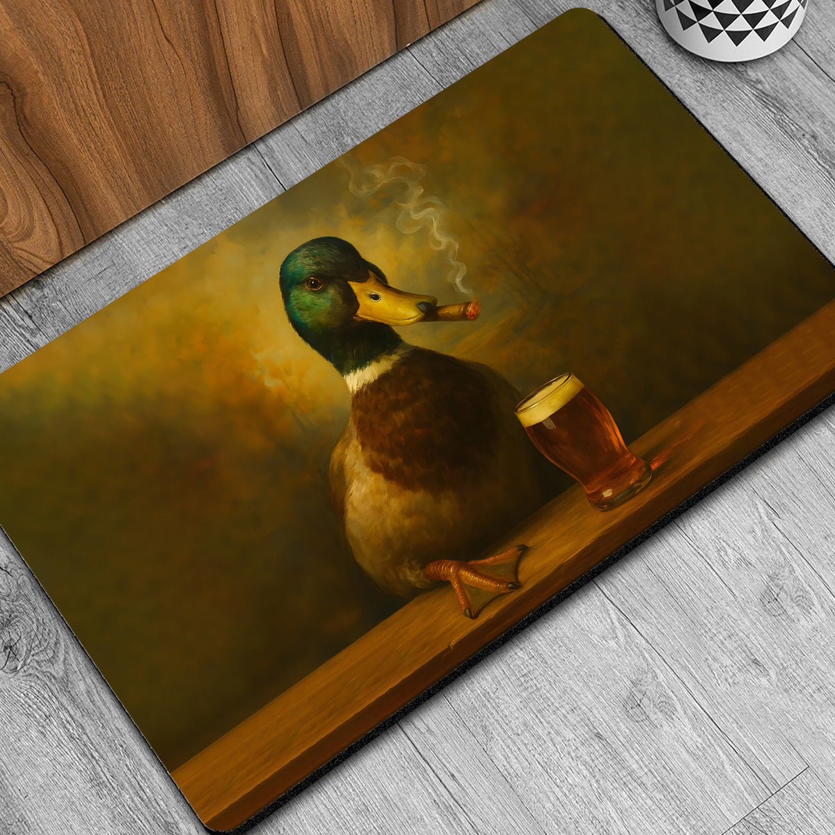 Funny Duck Barware Doormat – Hunting Lodge Rug with Drinking Glasses & Smoking-related Decor, Outdoor Cabin Decor Gift