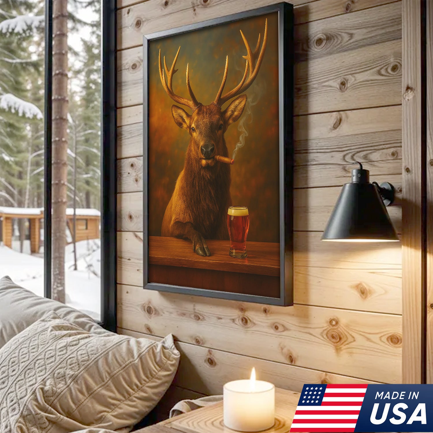 Funny Elk Drinking Cocktail Glasses & Smoking Canvas Wall Art - Rustic Hunting Perfect Gift for Hunters & Cocktail Glasses Lovers