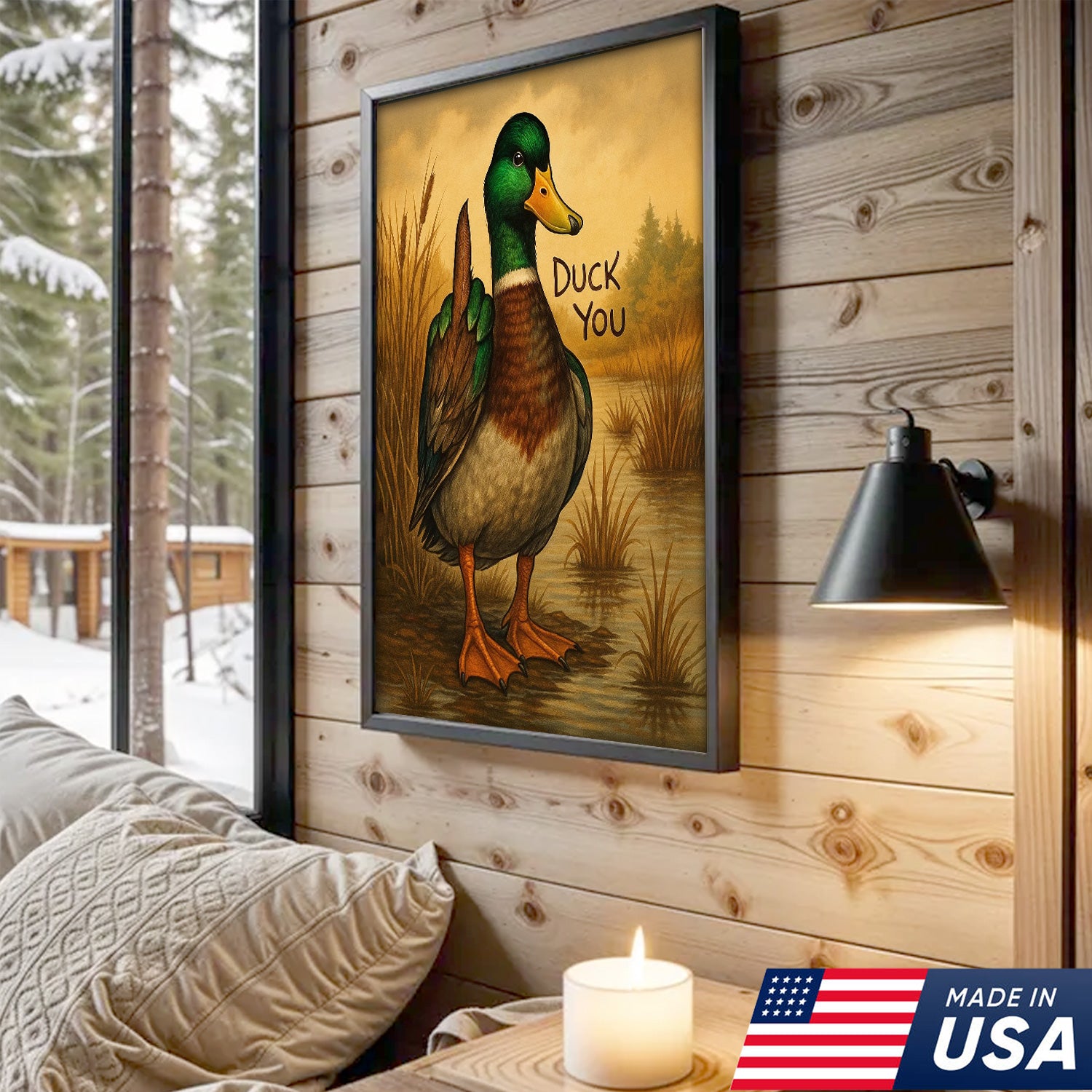 Funny Mallard Duck Canvas Wall Art – Cheeky Bathroom Decor, Rustic Lake House & Farmhouse Print