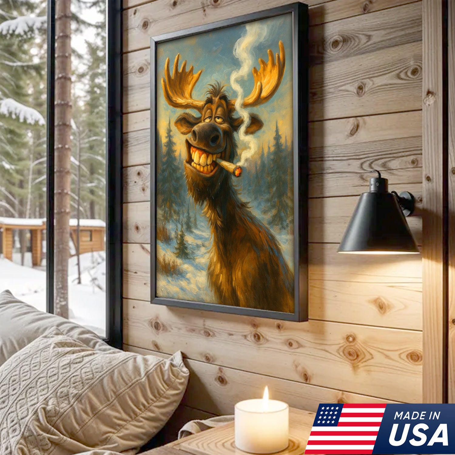 Funny Moose Smoking Canvas Wall Art – Rustic Cabin Lodge Decor