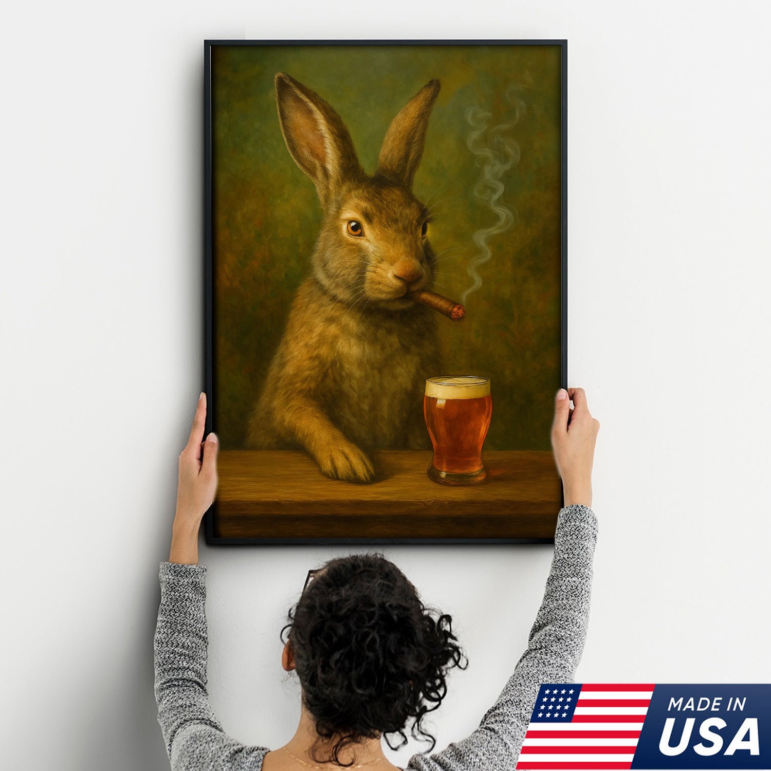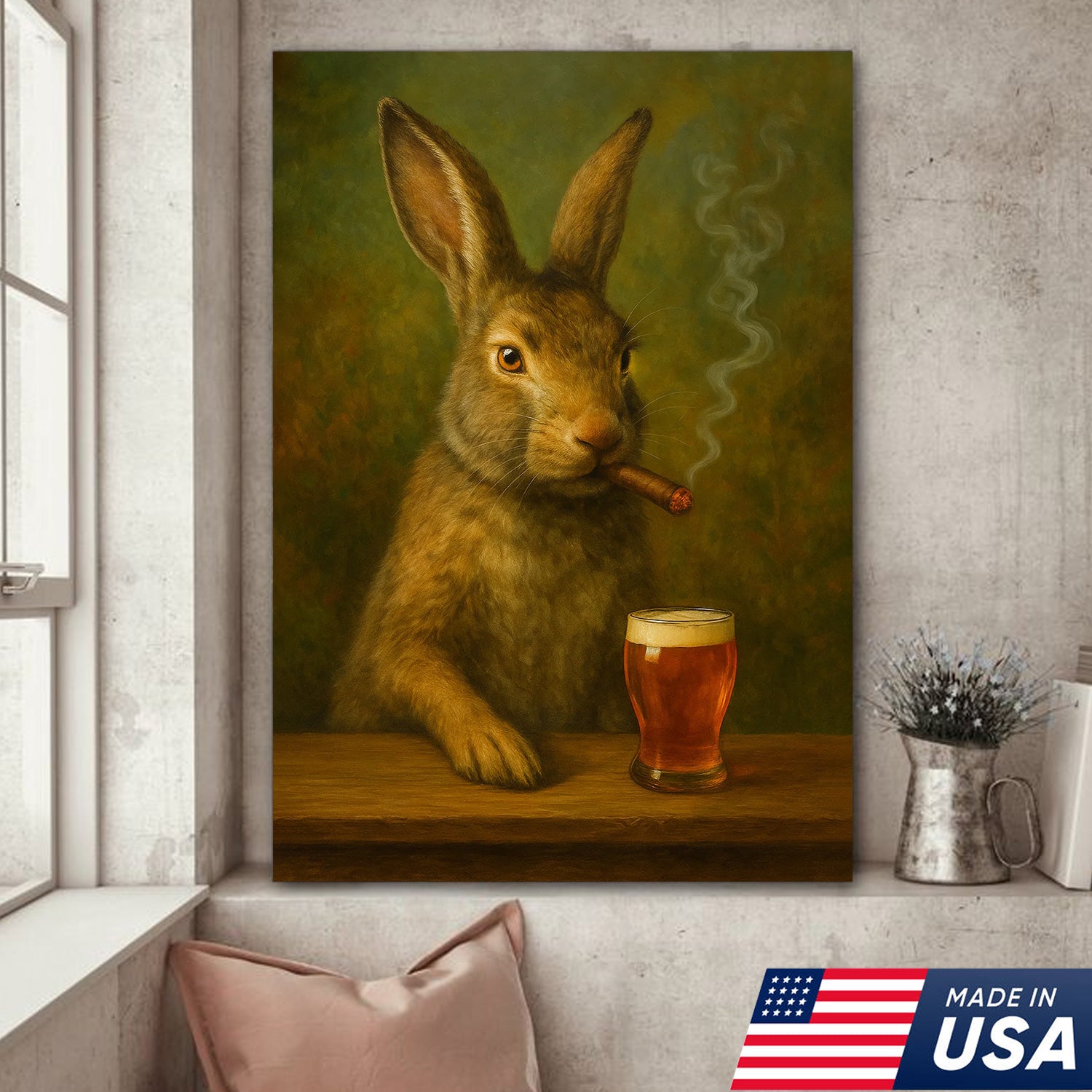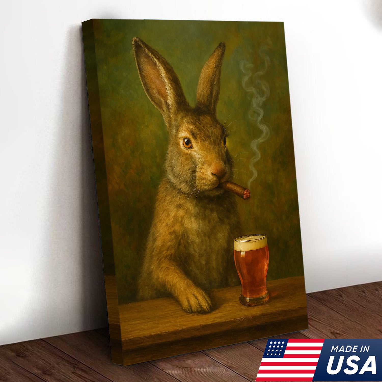 Funny Rabbit Smoking and Drinking Cocktail Glasses Canvas Wall Art – Rustic Cabin Decor