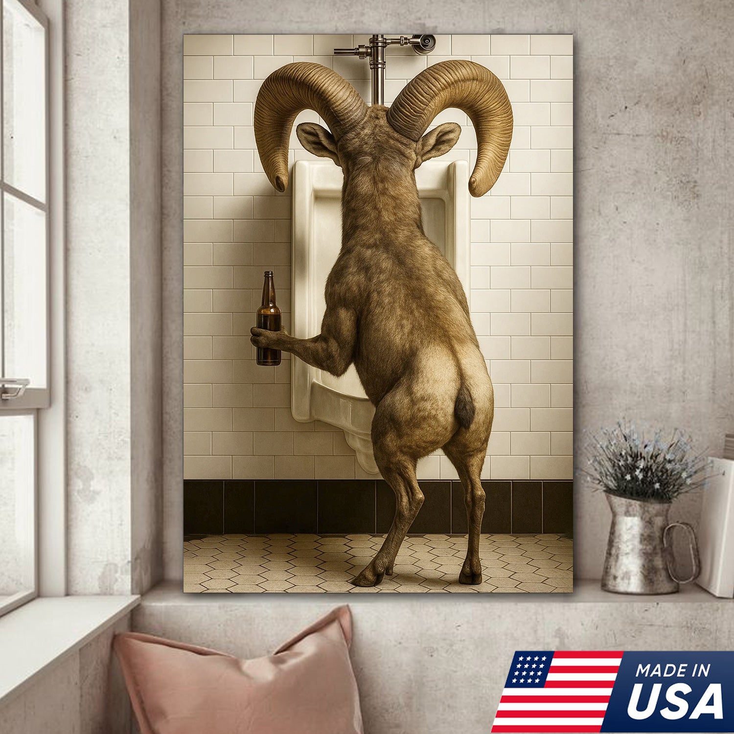 Humorous Big Horn Sheep Canvas Wall Art - Rustic Lodge Bathroom Decor for Cabin and Farmhouse - Wildlife Lover Gift