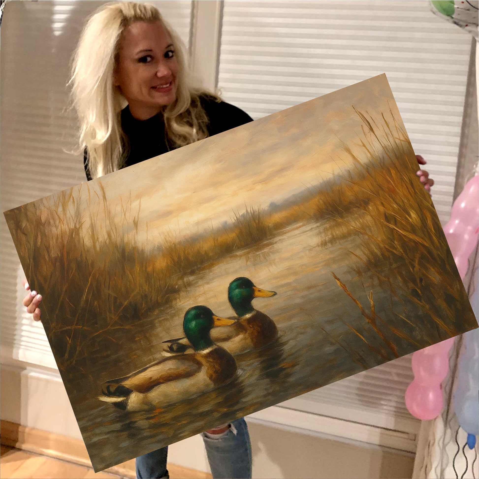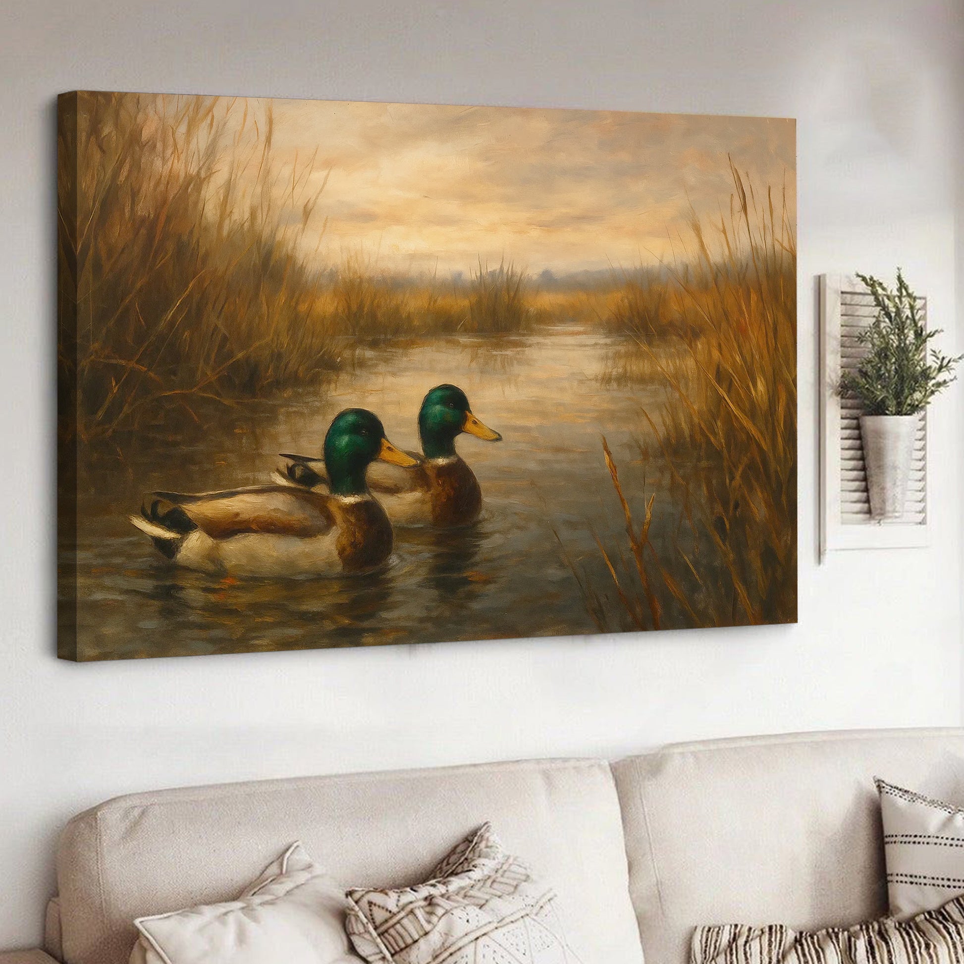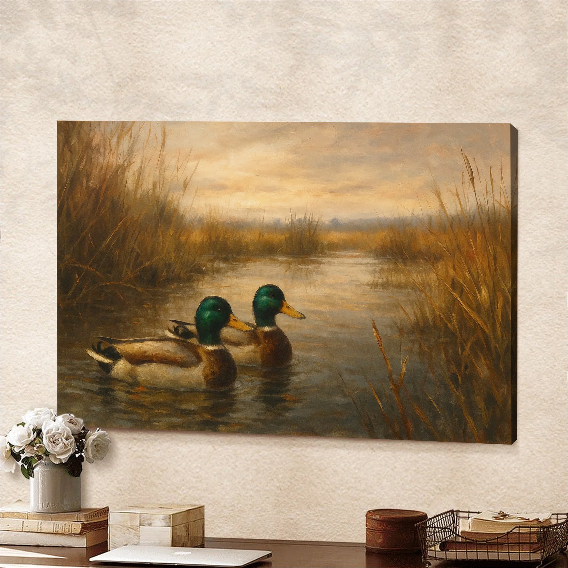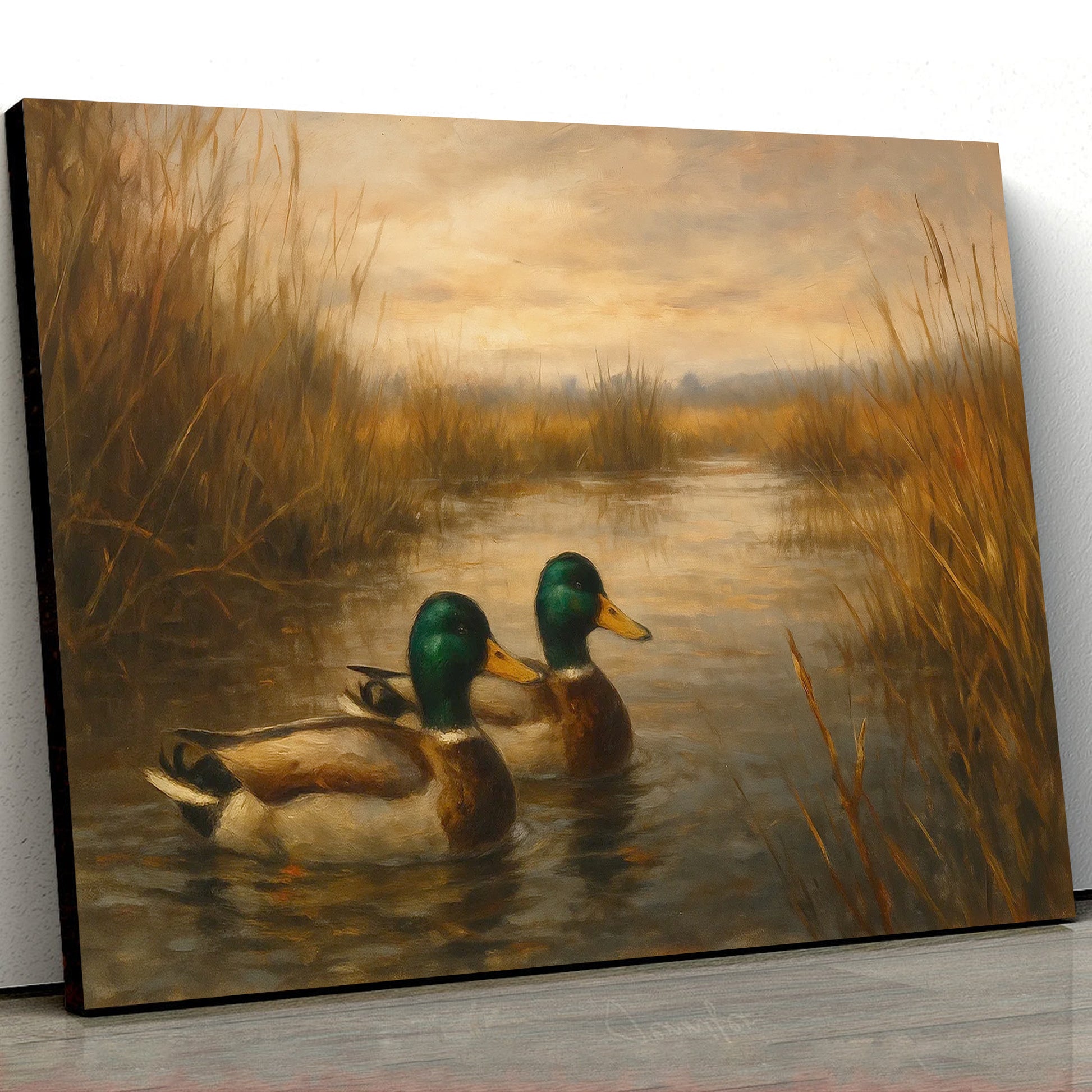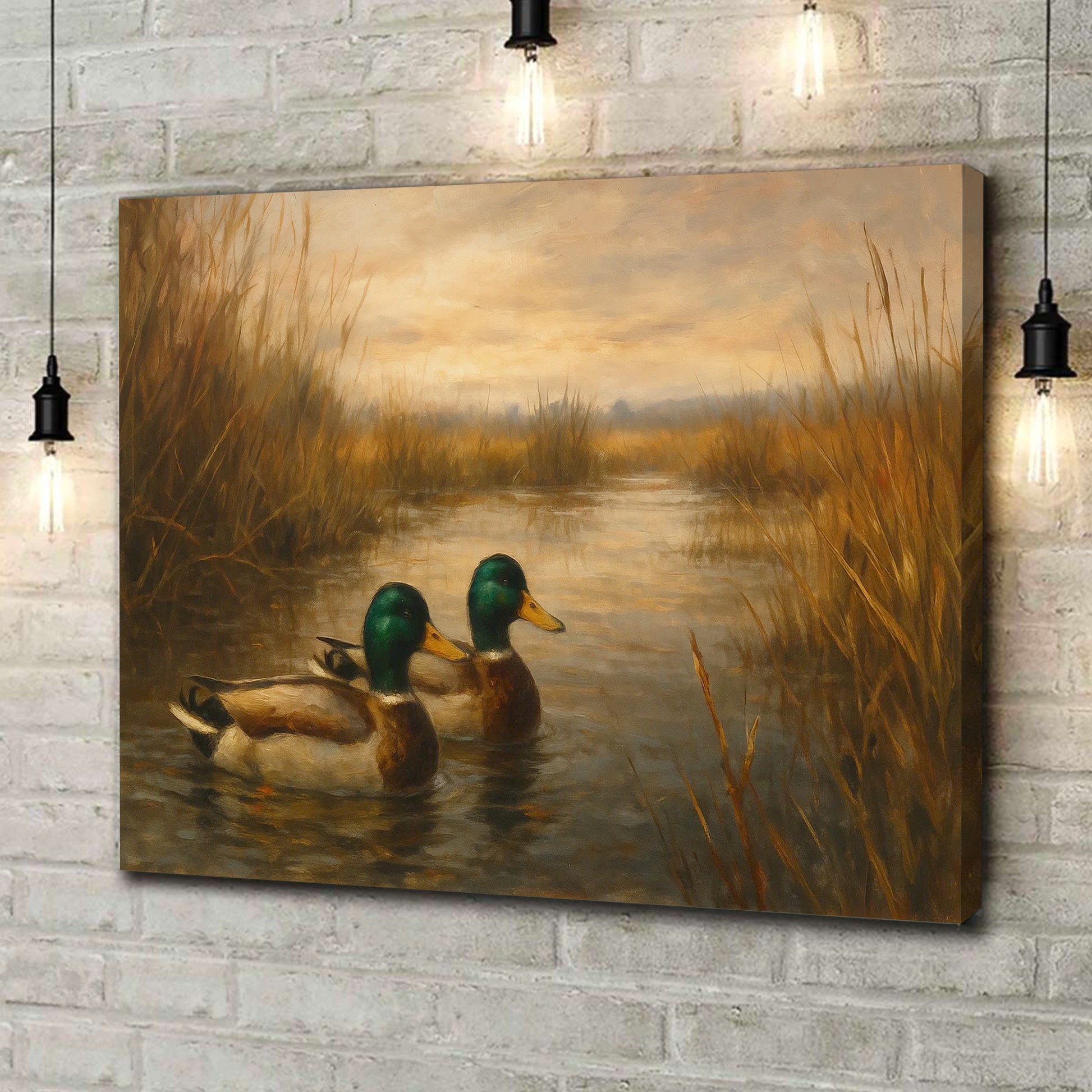 Mallard Duck Wall Art Canvas – Hunting Lodge & Cabin Decor - Rustic Waterfowl Painting