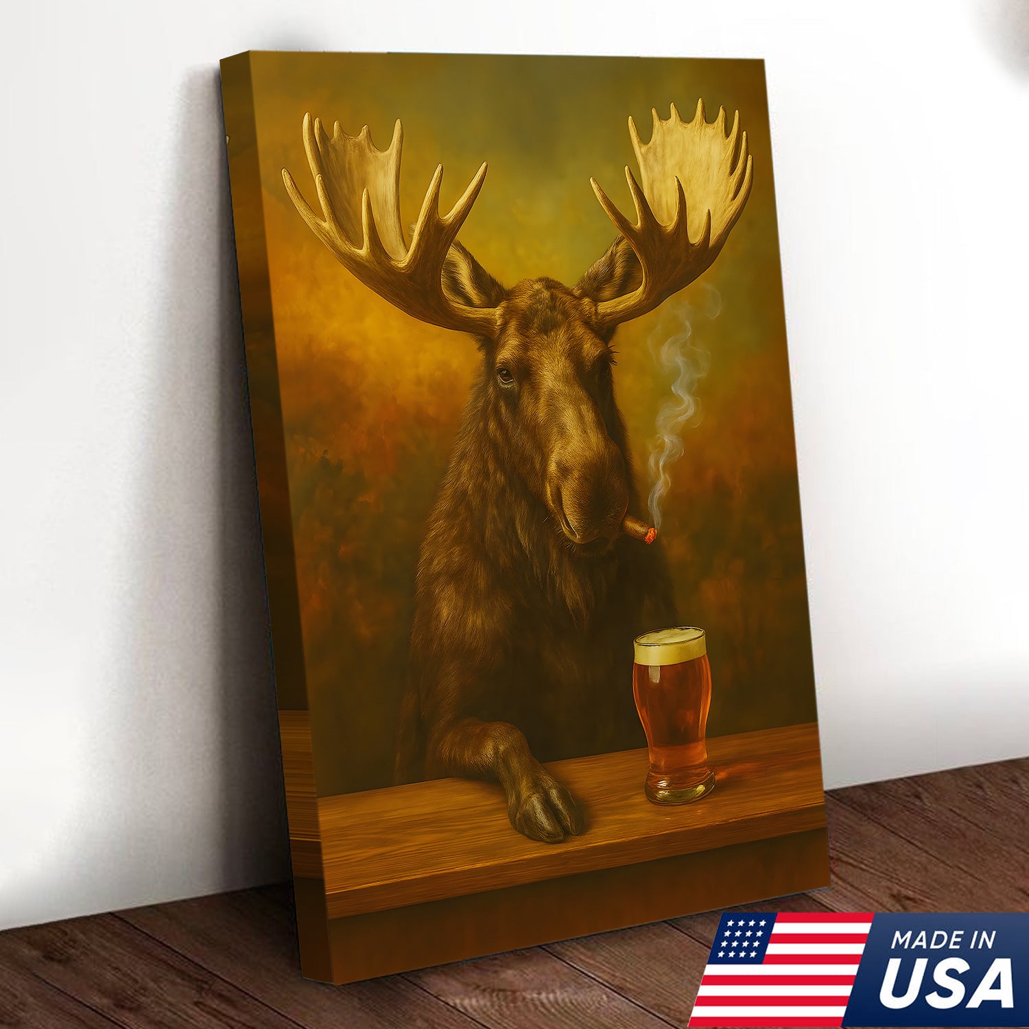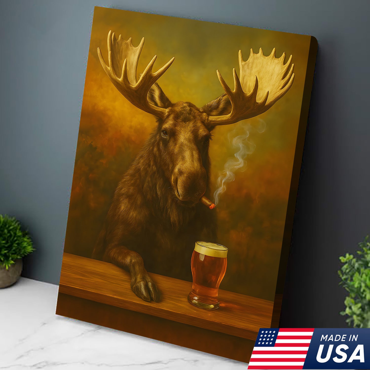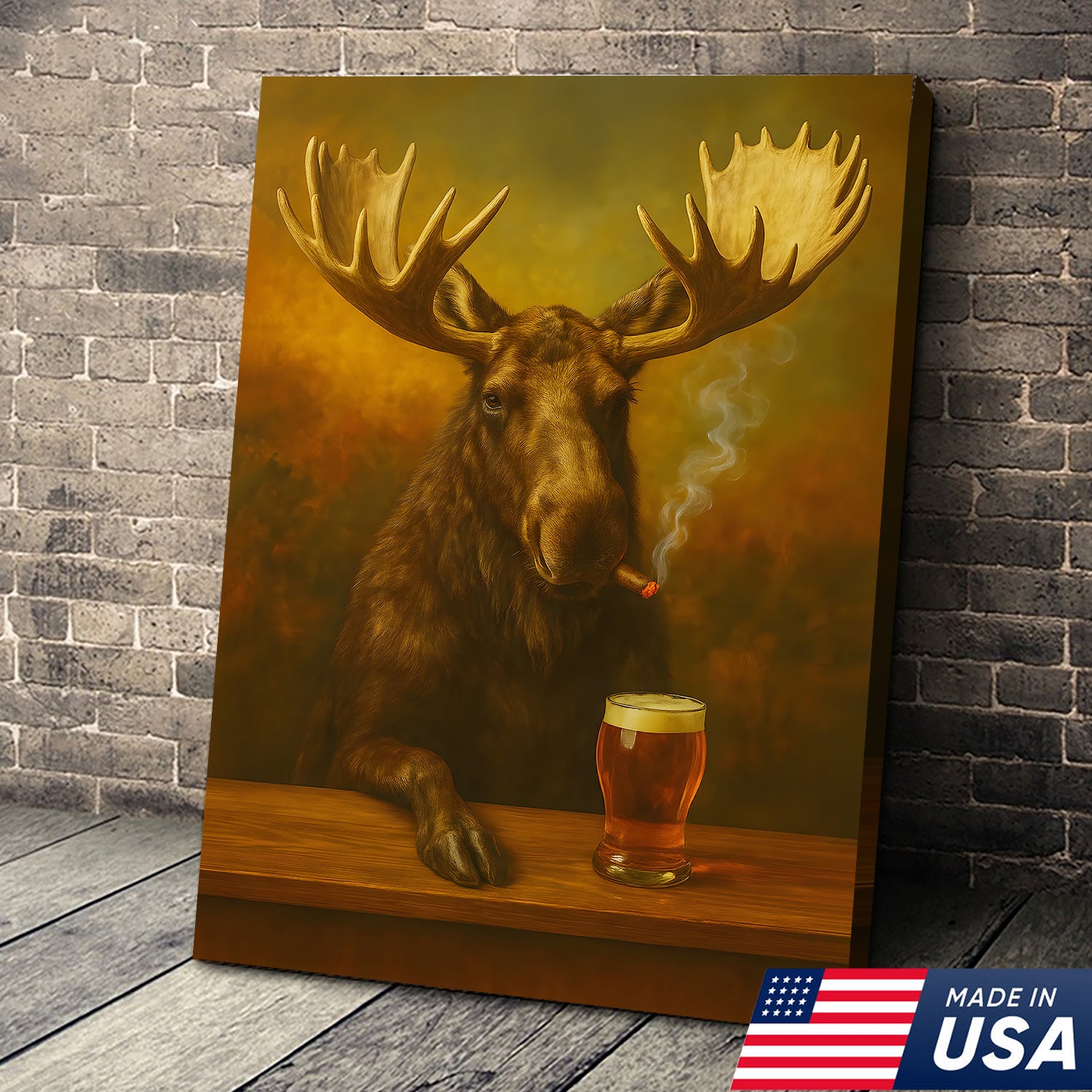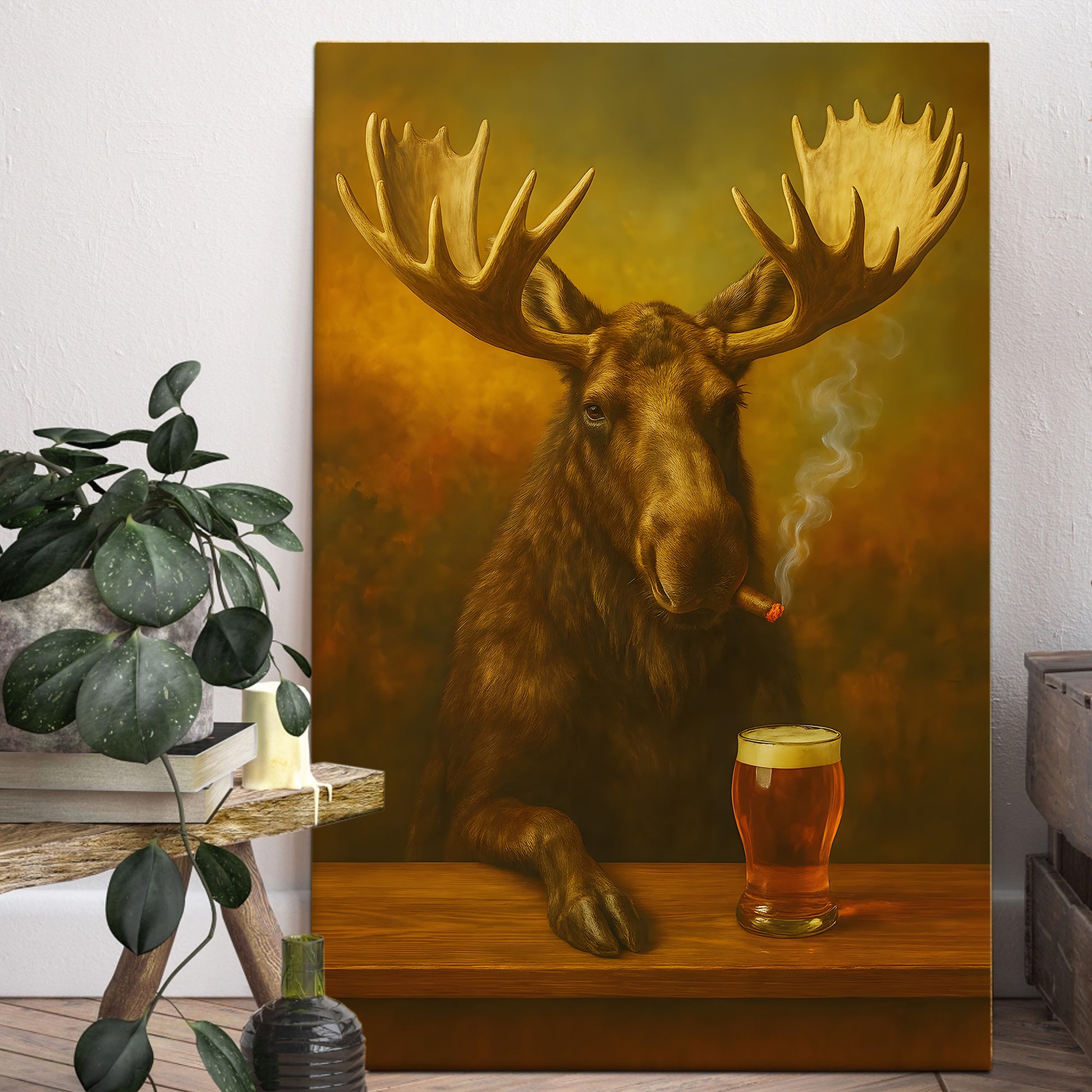 Moose Smoking & Drinking Canvas - Rustic Bar Wall Art Hunting Lodge & Man Cave Decor