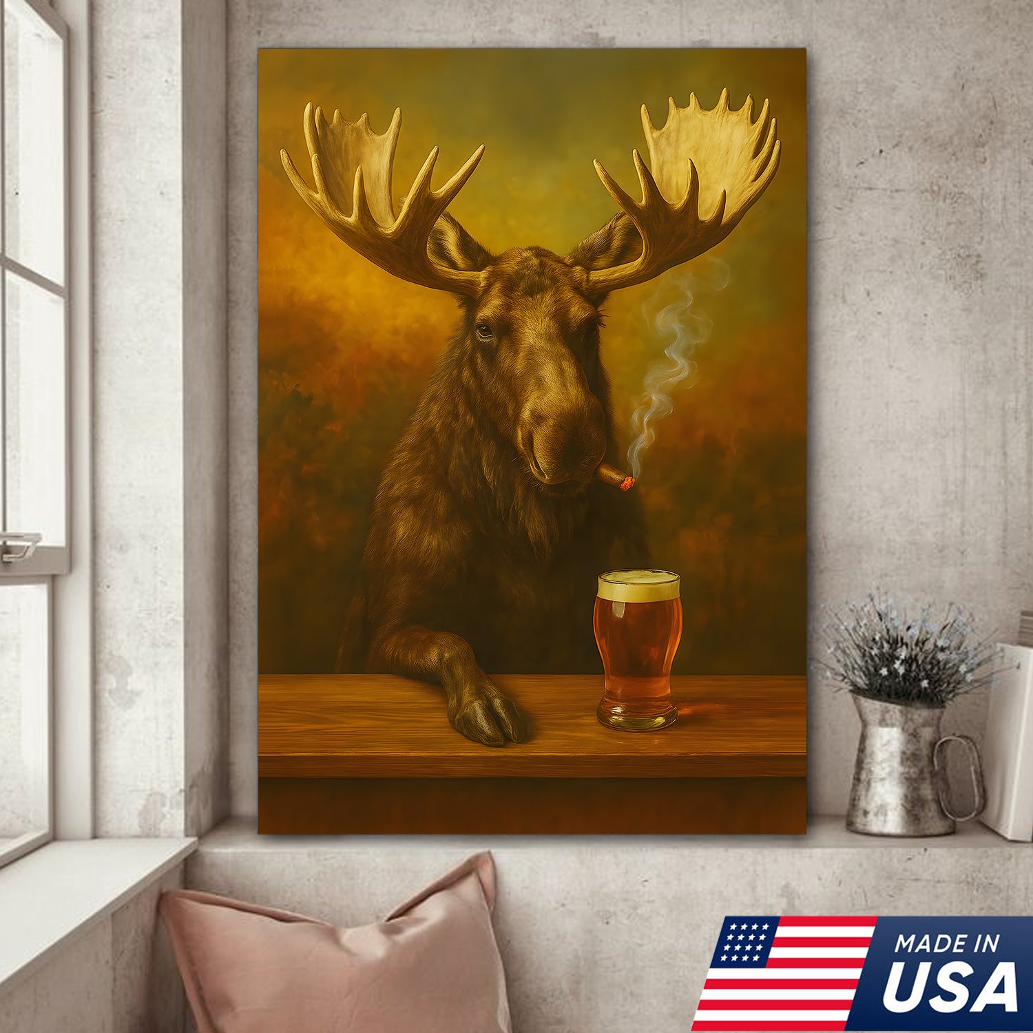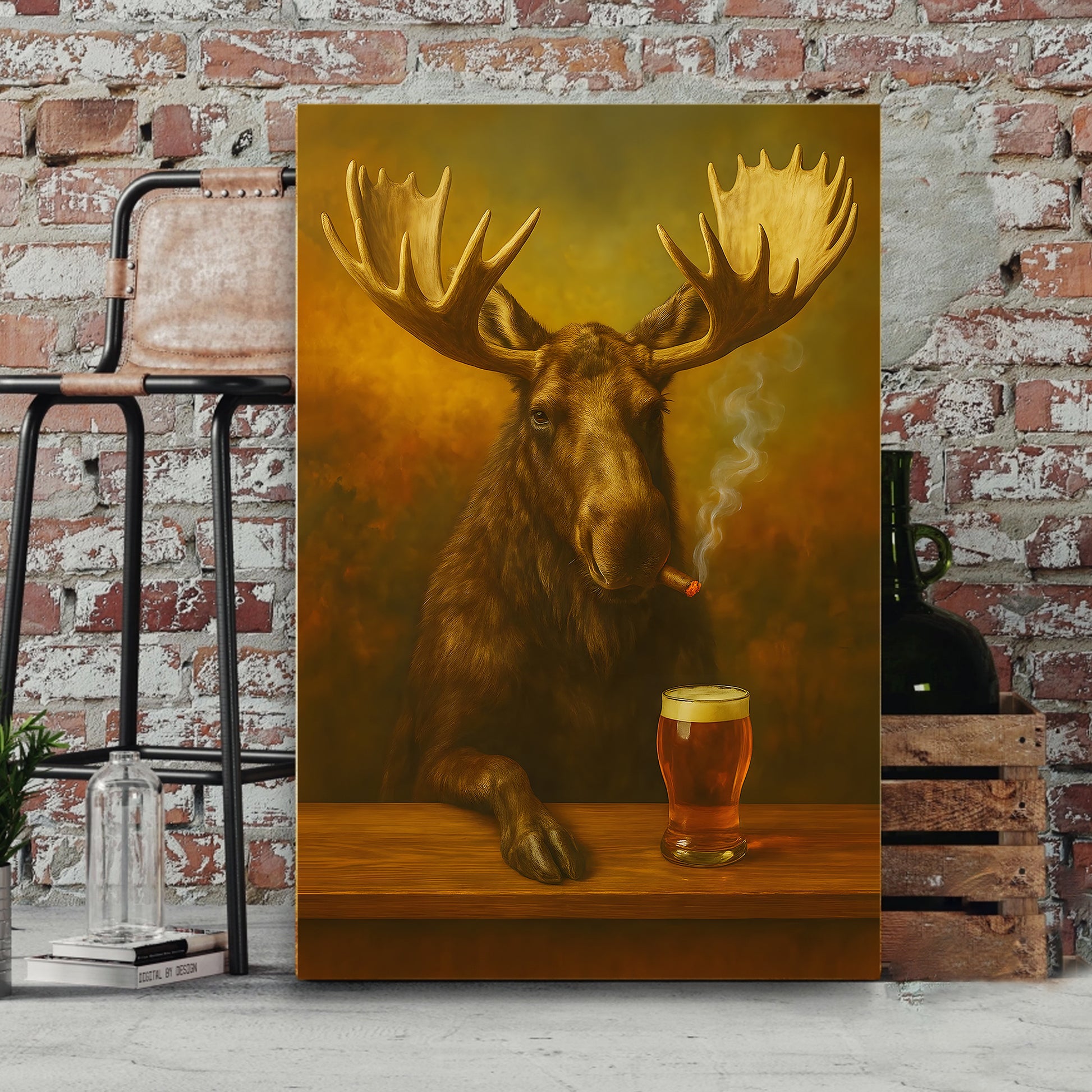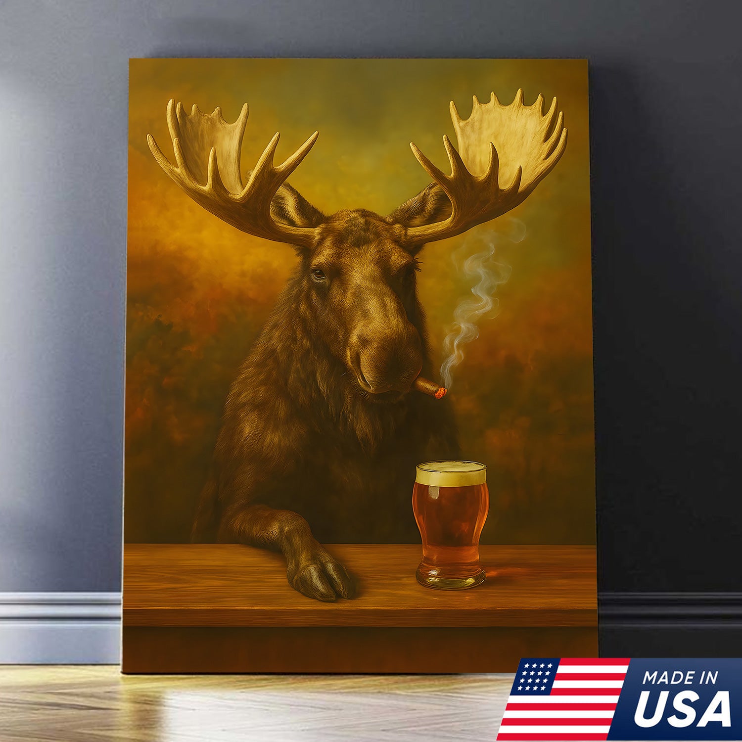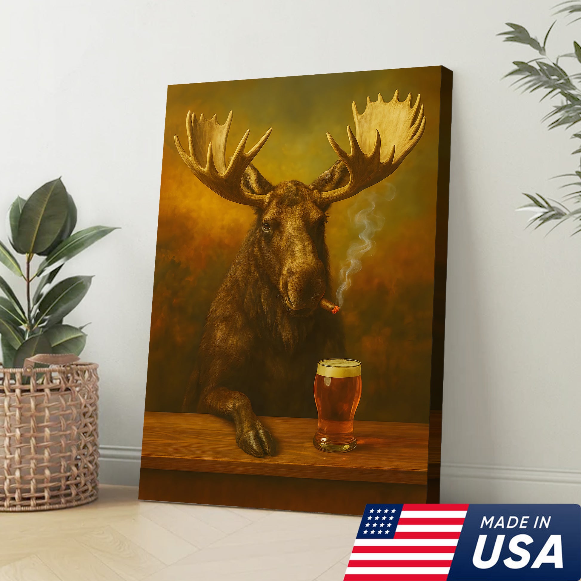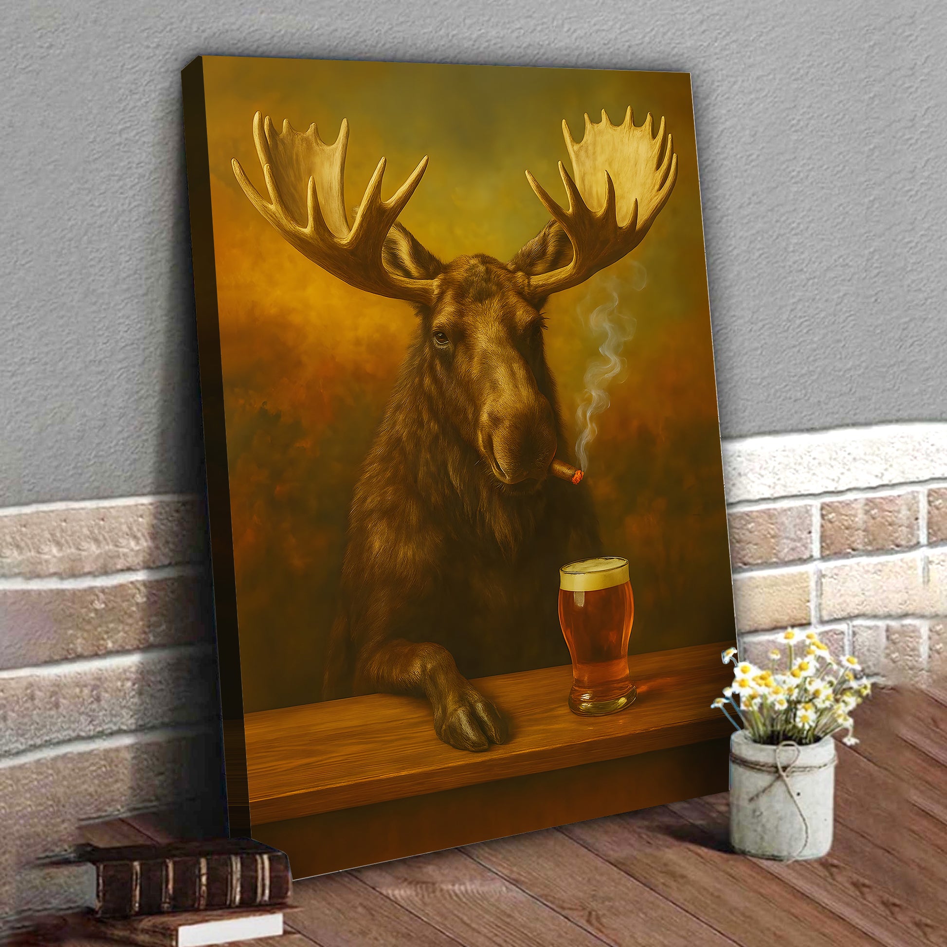 Moose Smoking & Drinking Canvas - Rustic Bar Wall Art Hunting Lodge & Man Cave Decor