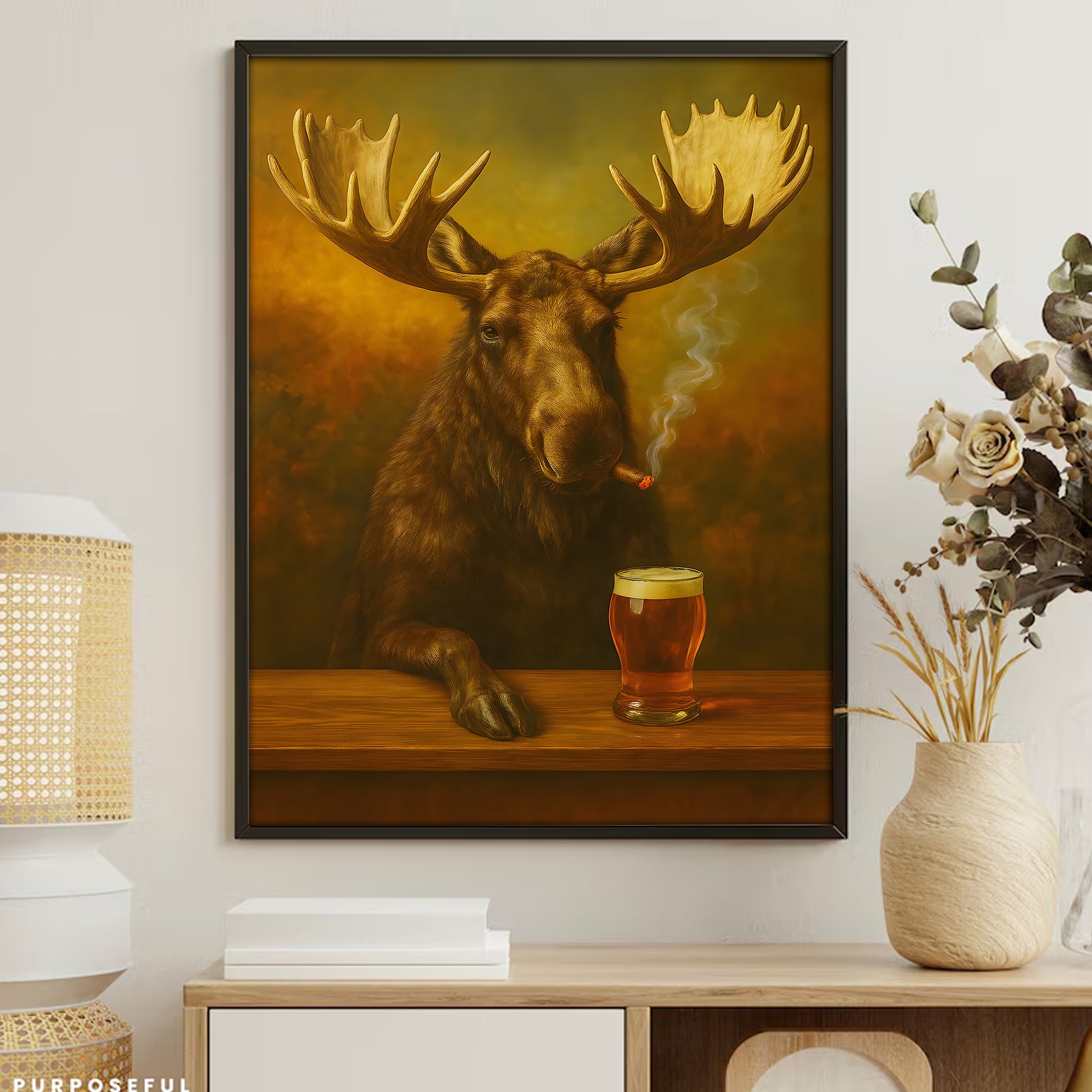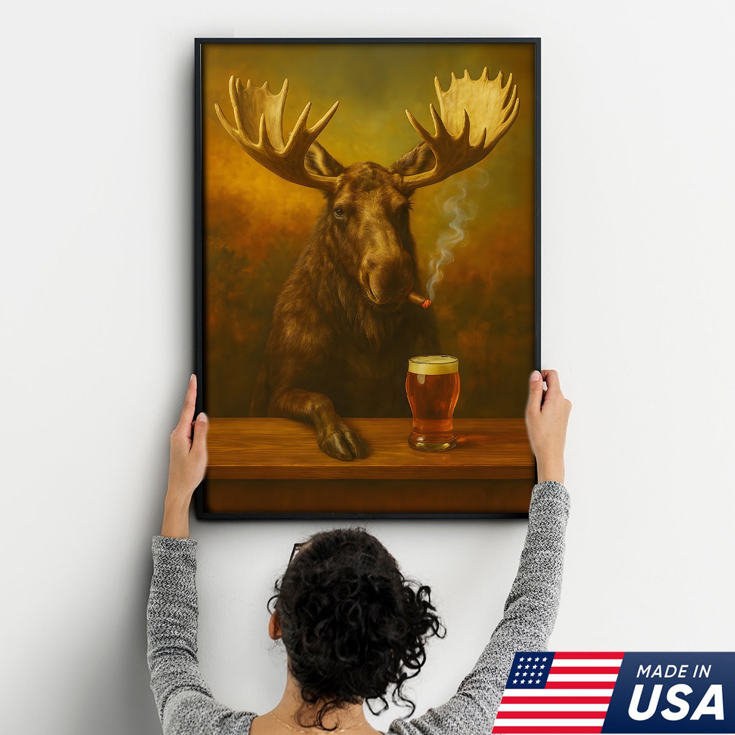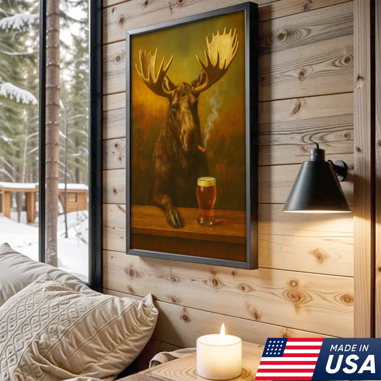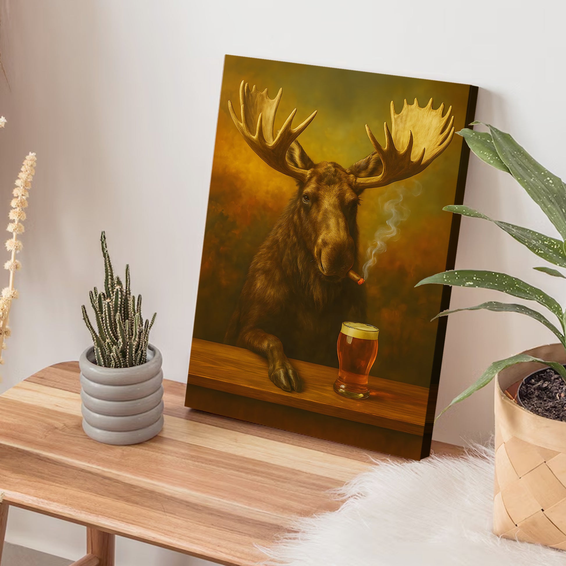 Moose Smoking & Drinking Canvas - Rustic Bar Wall Art Hunting Lodge & Man Cave Decor
