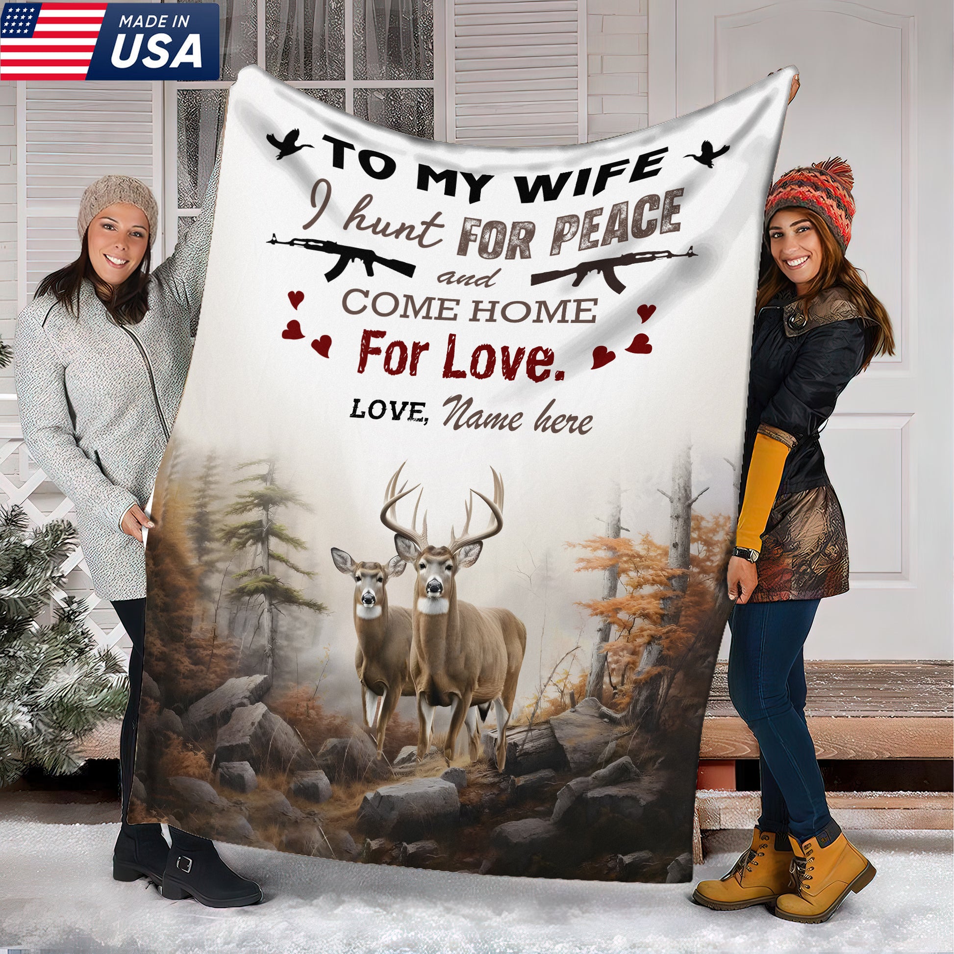 Personalized Deer Hunting “To My Wife, I Hunt for Peace and Come Home for Love” Fleece Blanket