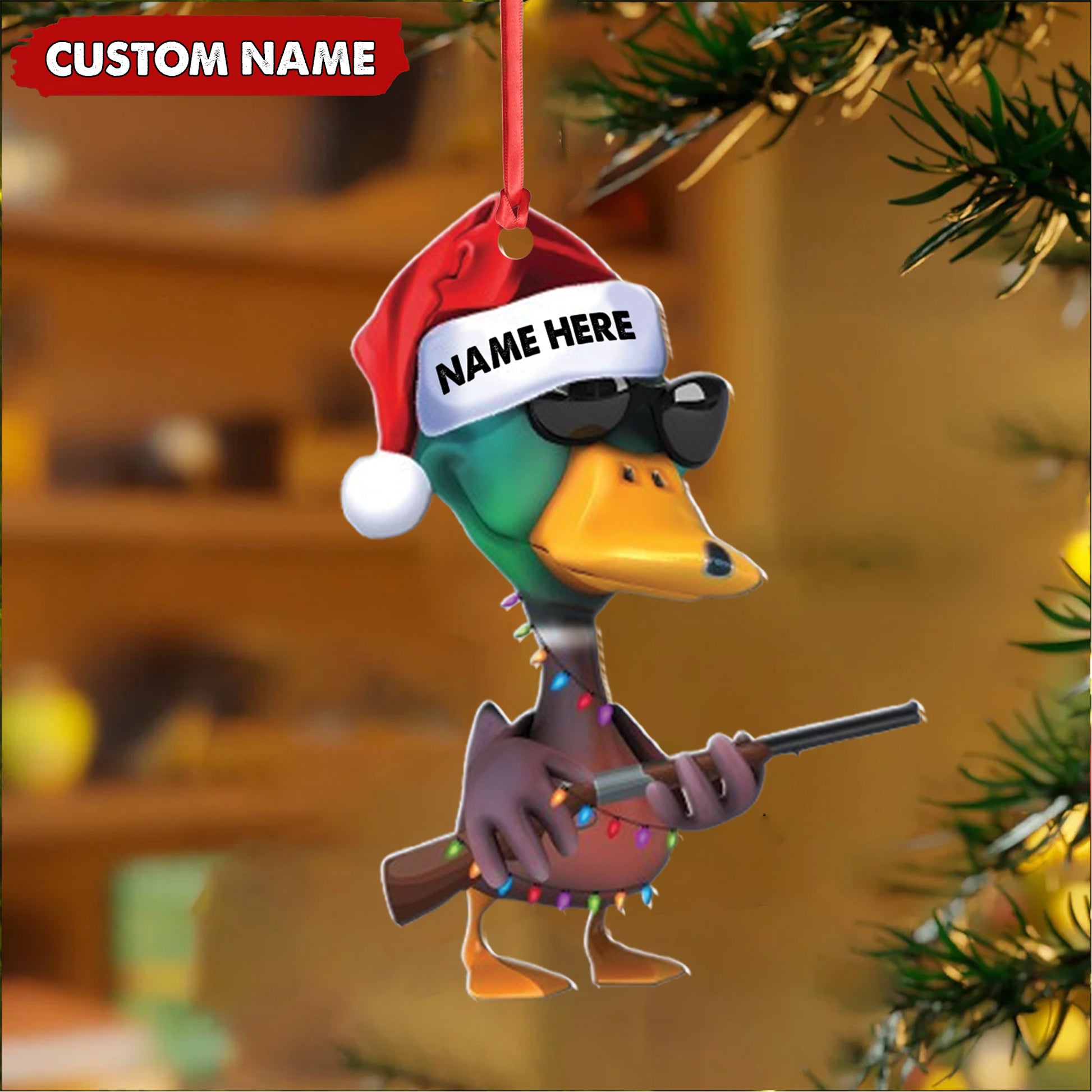 Personalized Funny Duck Hunting Acrylic Christmas Ornament – Custom Gift for Hunters & Outdoor Lovers