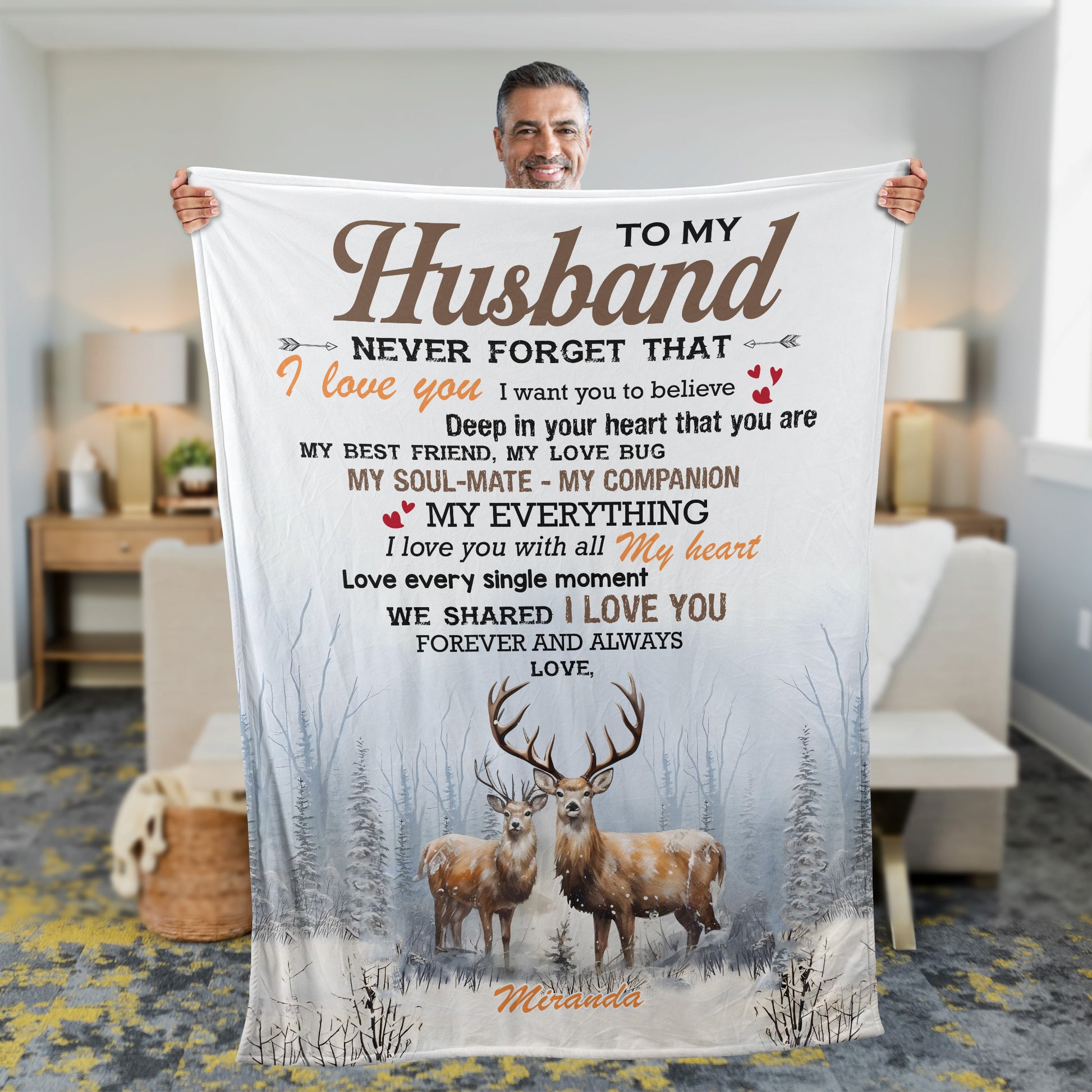 Personalized To My Husband Hunting Deer Fleece Blanket – Custom Name Gift for Husband, Anniversary