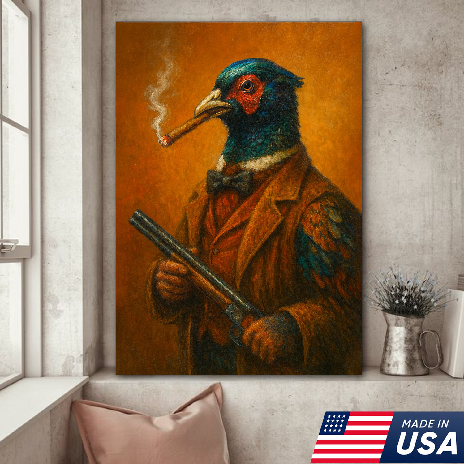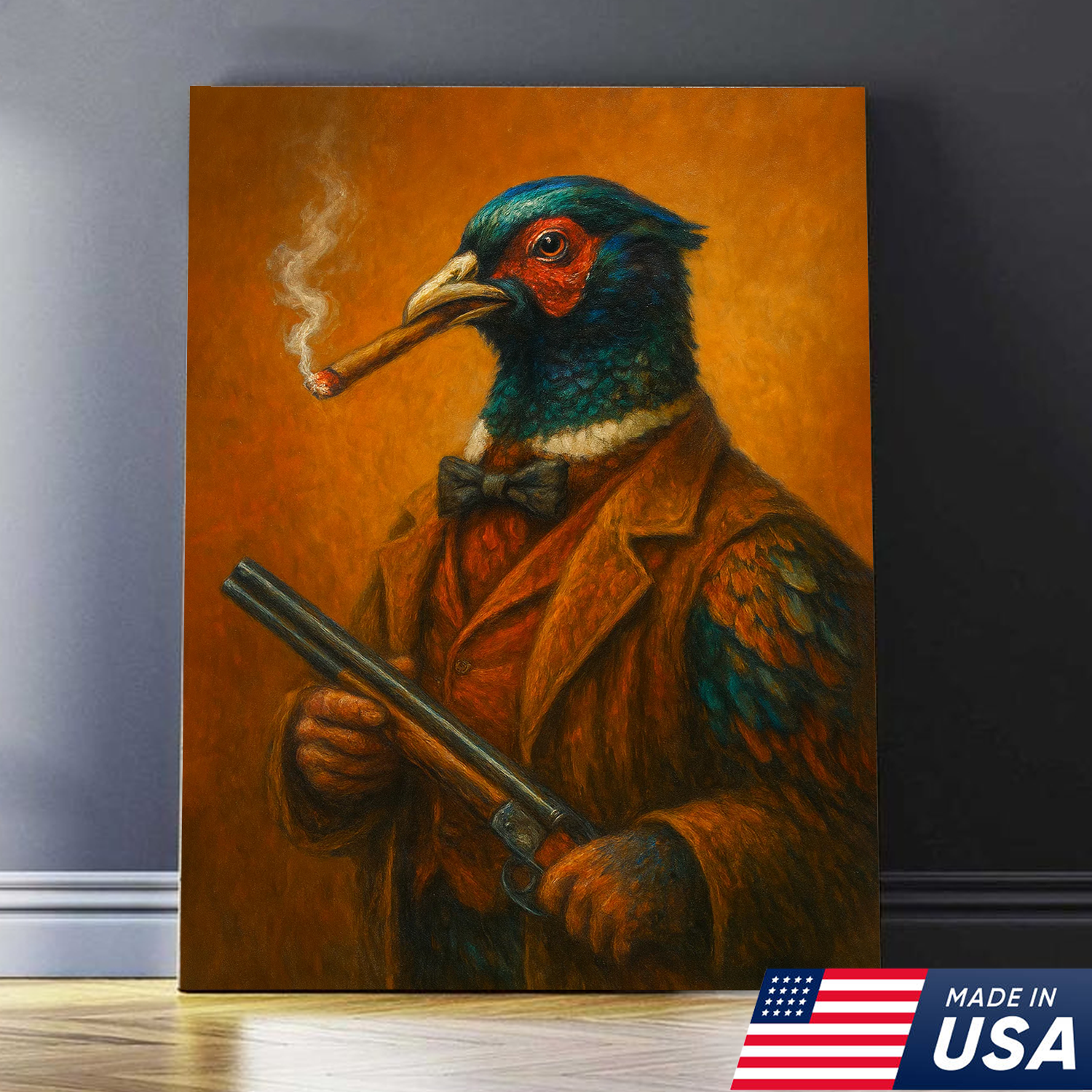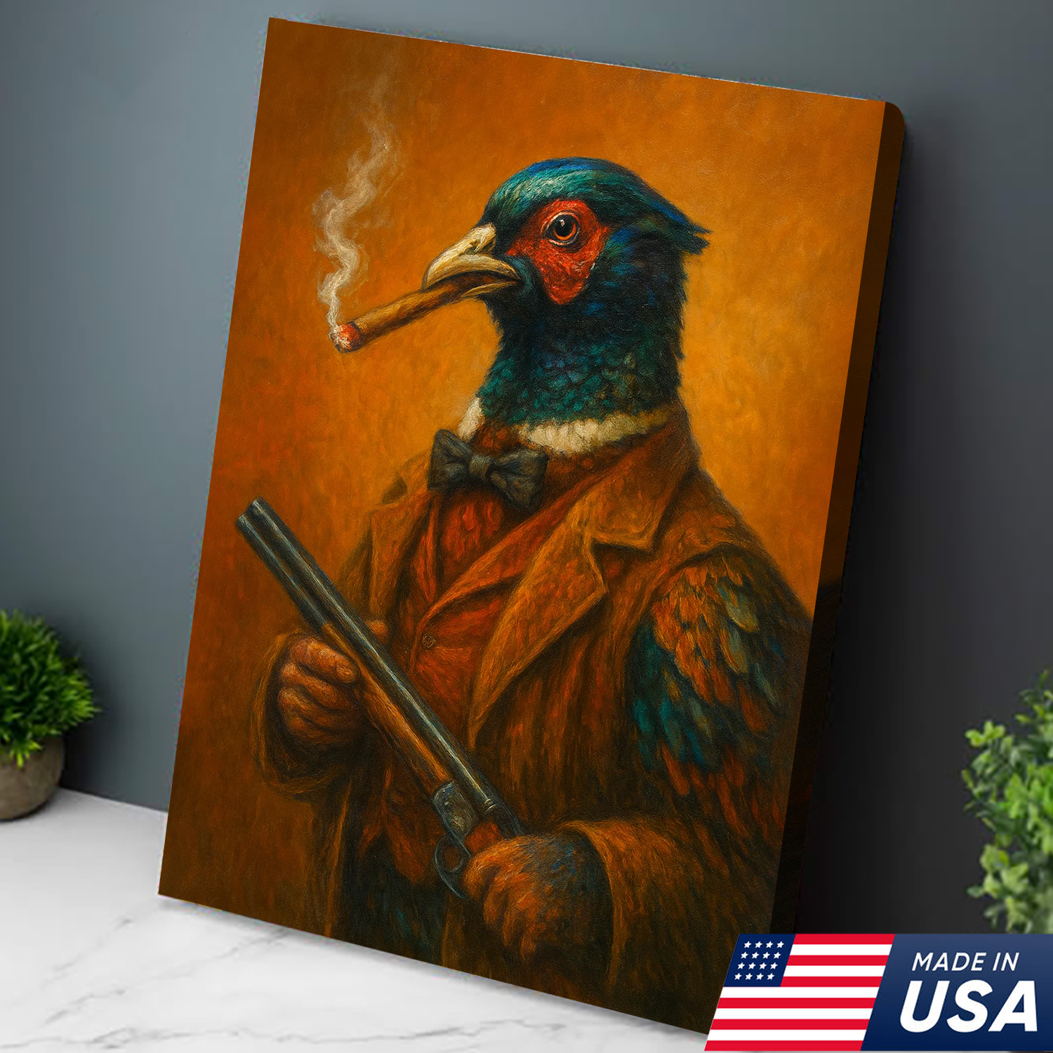 Pheasant Hunter Canvas Wall Art – Funny Hunting Gift for Men, Upland Game Bird Hunters & Lodge Decor