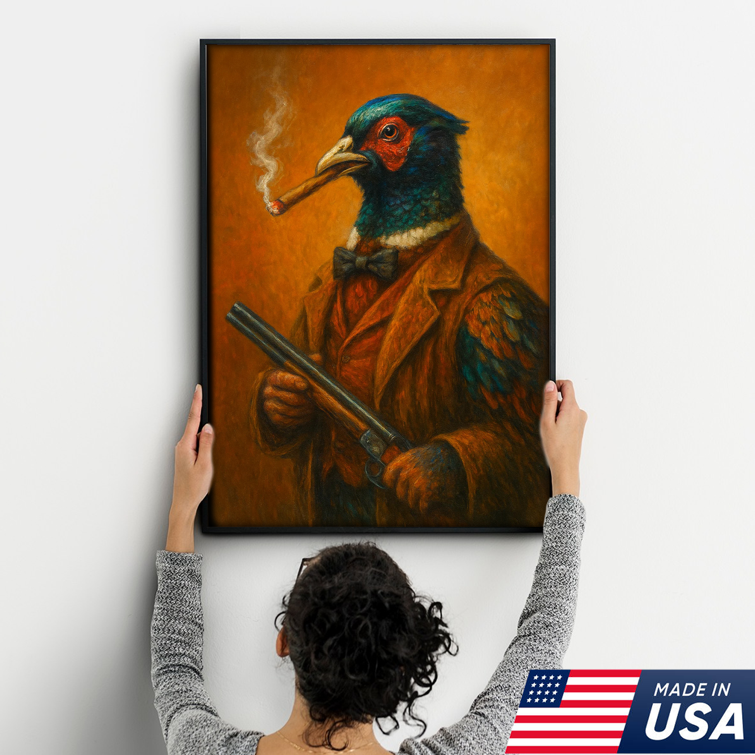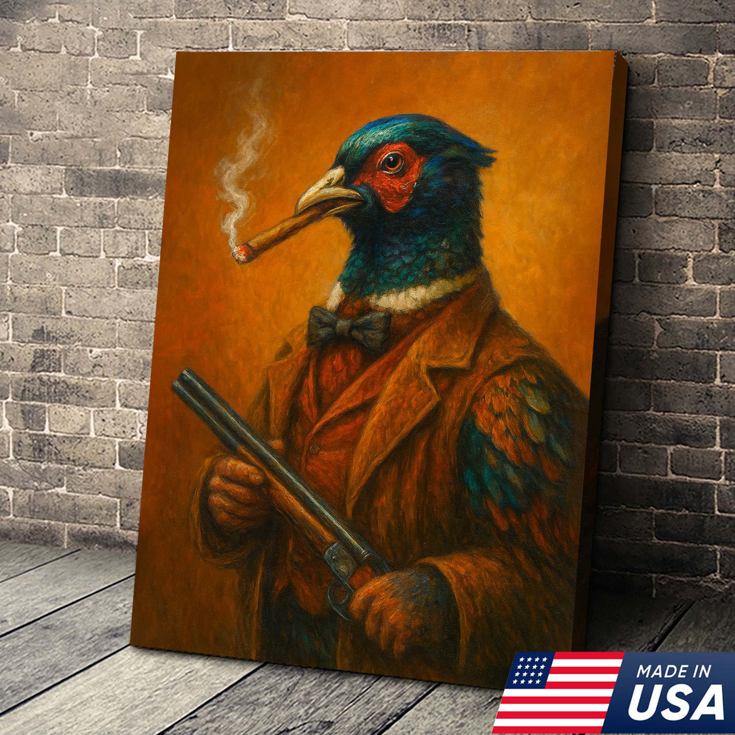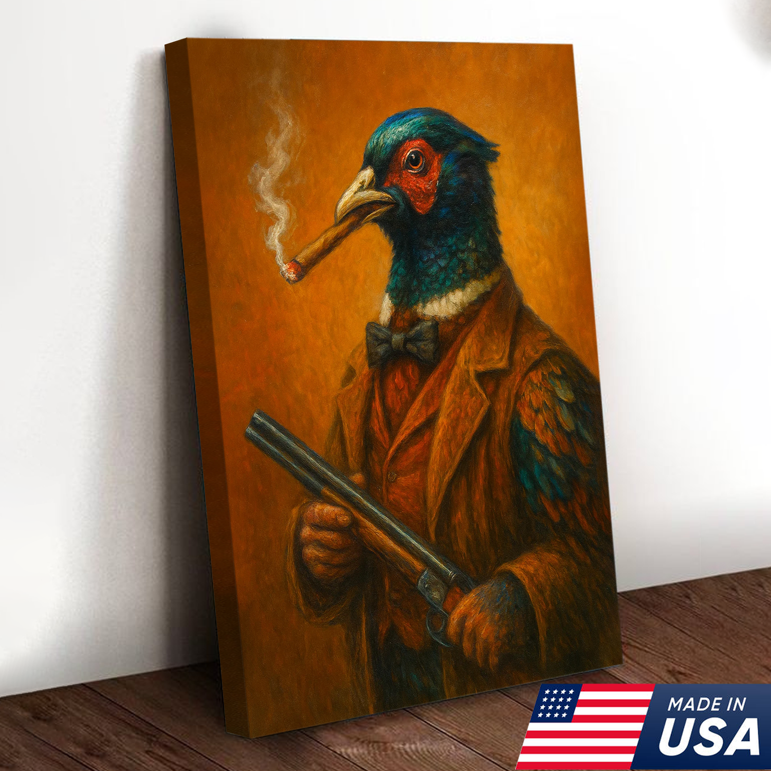 Pheasant Hunter Canvas Wall Art – Funny Hunting Gift for Men, Upland Game Bird Hunters & Lodge Decor