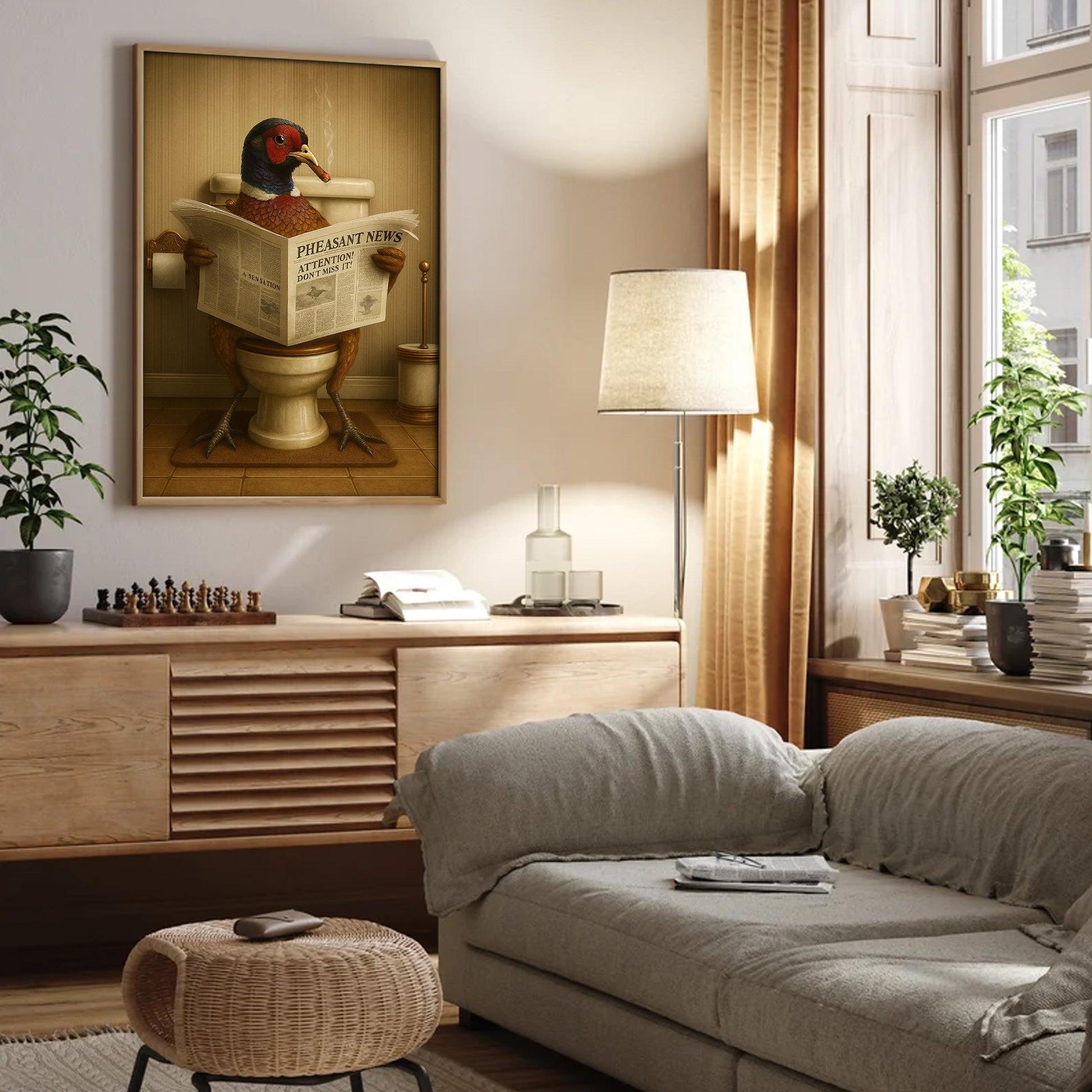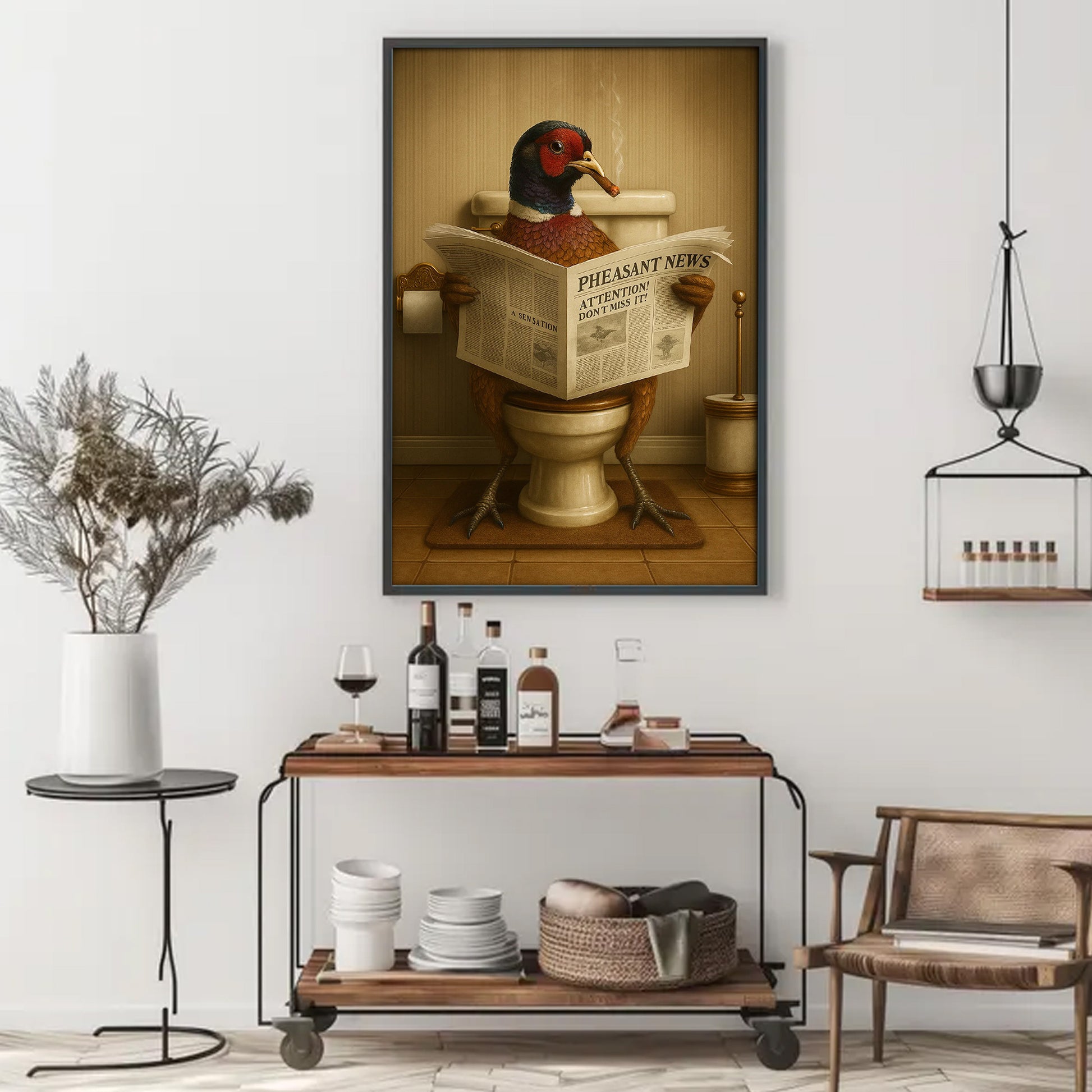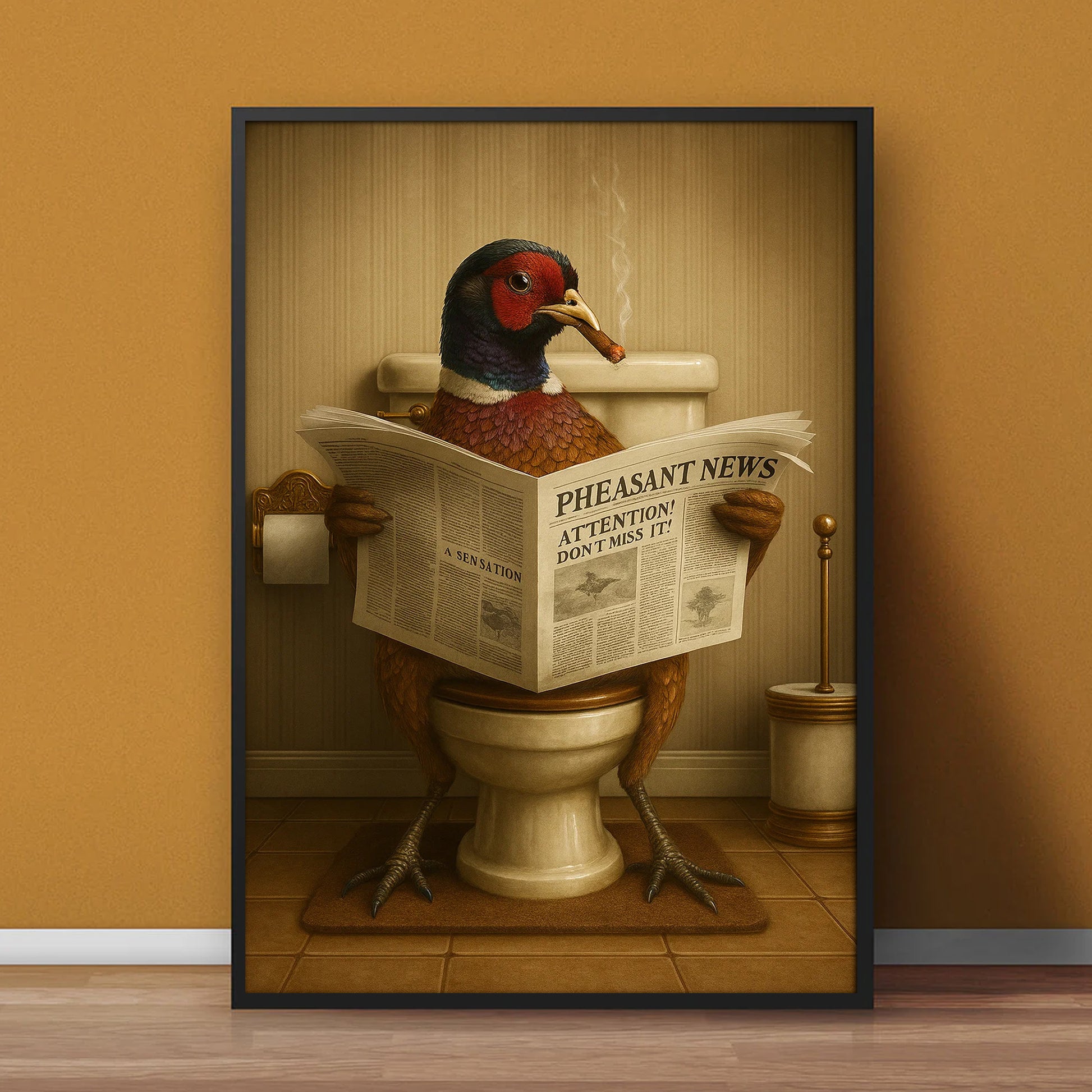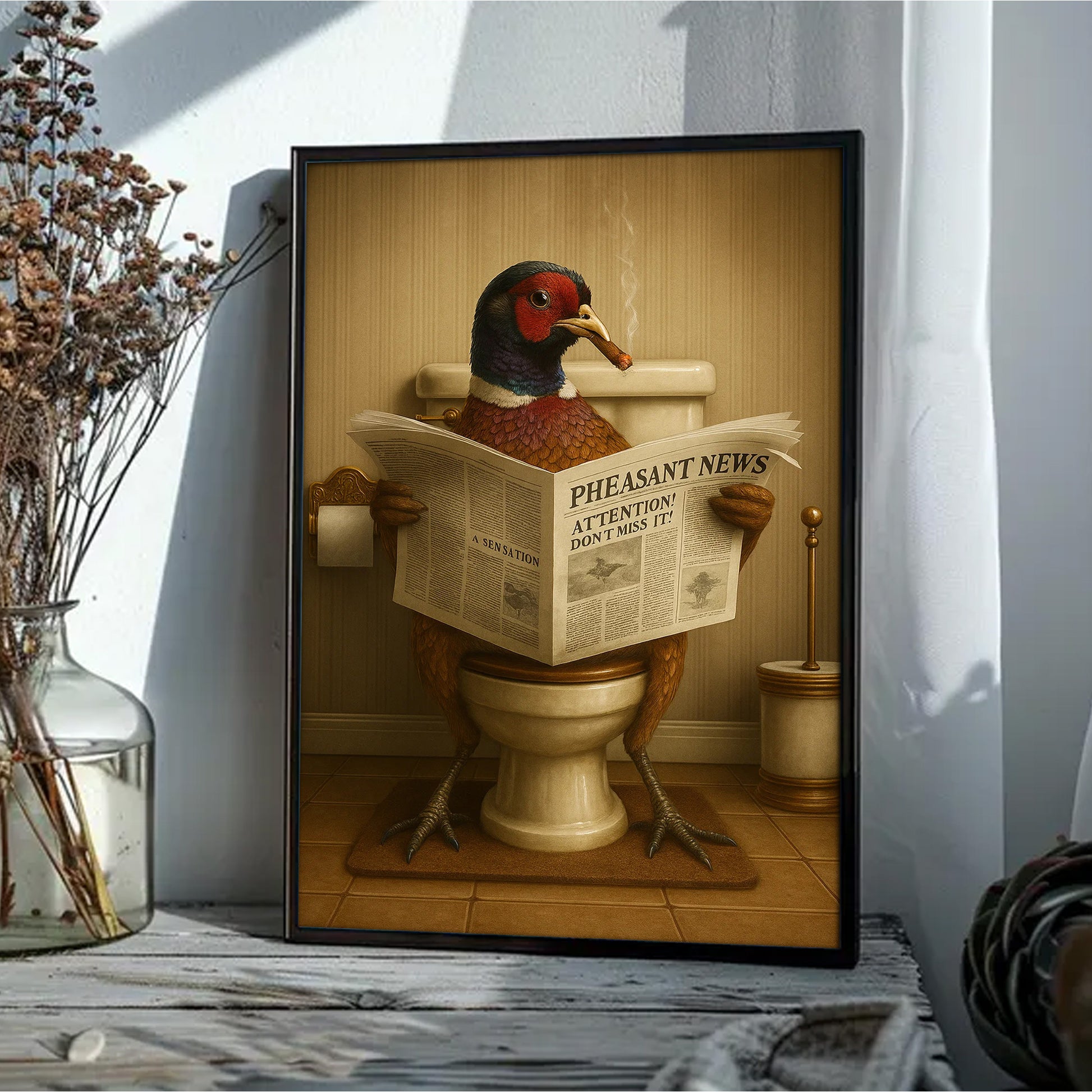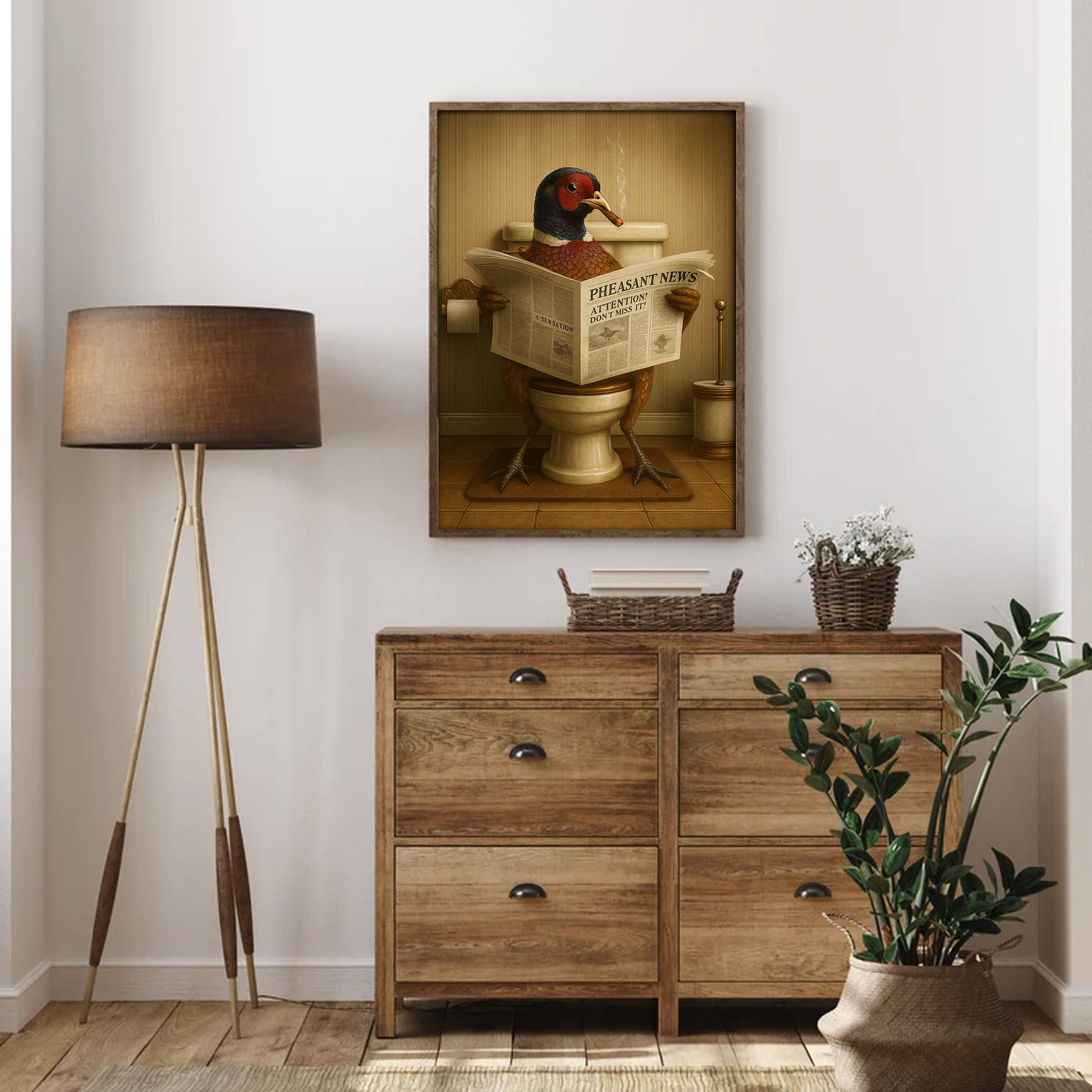 Phesan Reading News Smoking Bathroom Wall Art – Rustic Decor for Men, Hilarious Gift for Men, Hunter