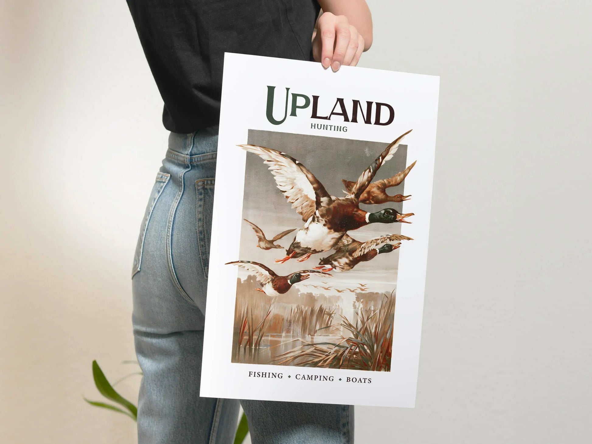 Retro Mallard Print Gift for Hunter Upland Hunting Canvas Art - Mallard Ducks in Flight Perfect Gift for Duck Hunters & Outdoor Enthusiasts