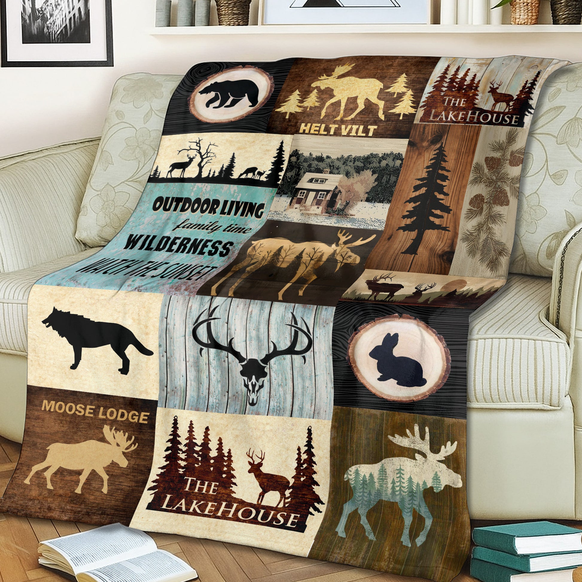 Rustic Moose Lodge Blanket – Cozy Cabin & Lakehouse Decor for Outdoor Lovers