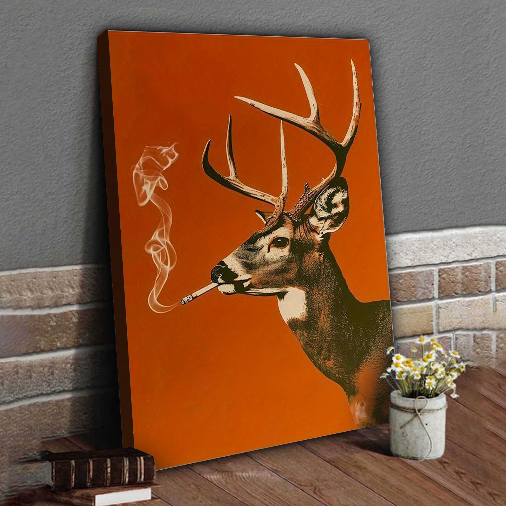 Smoking Buck Deer Canvas – Funny Hunting Wall Art for Man Caves - Gift for Hunters & Redneck Vibes