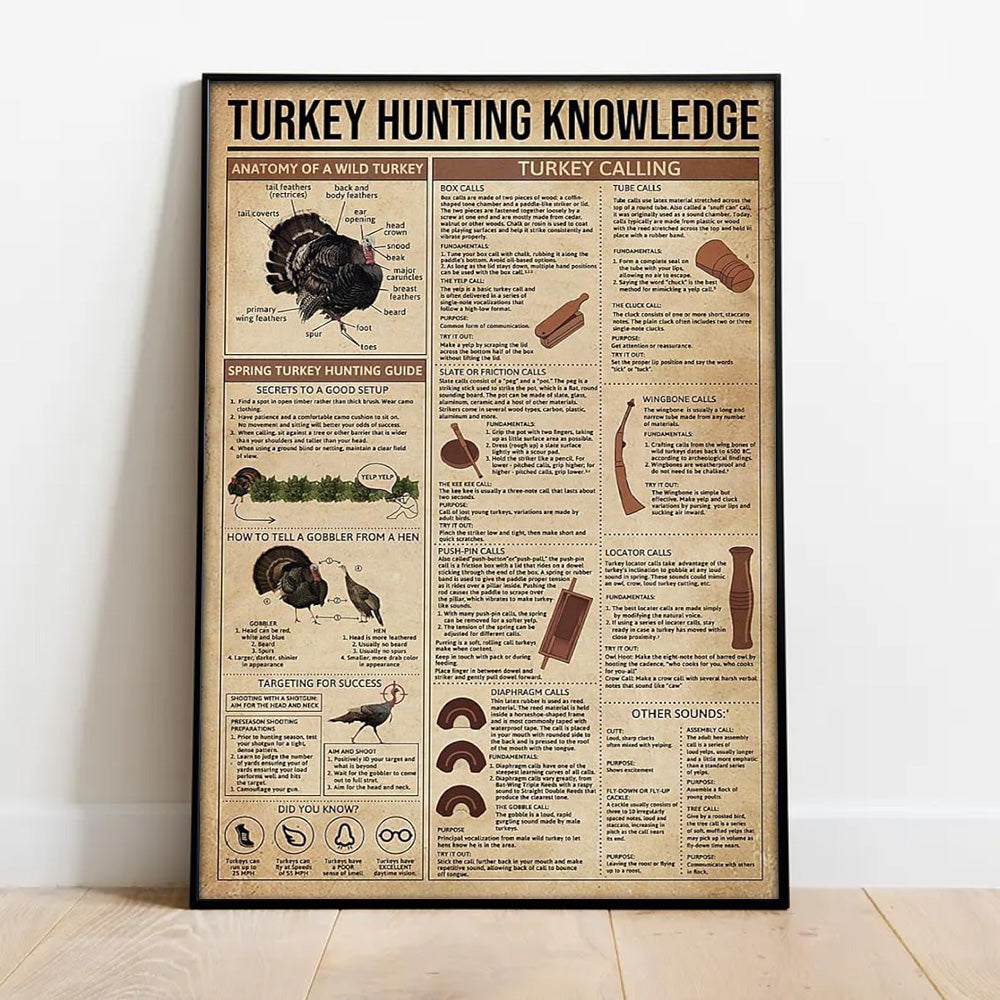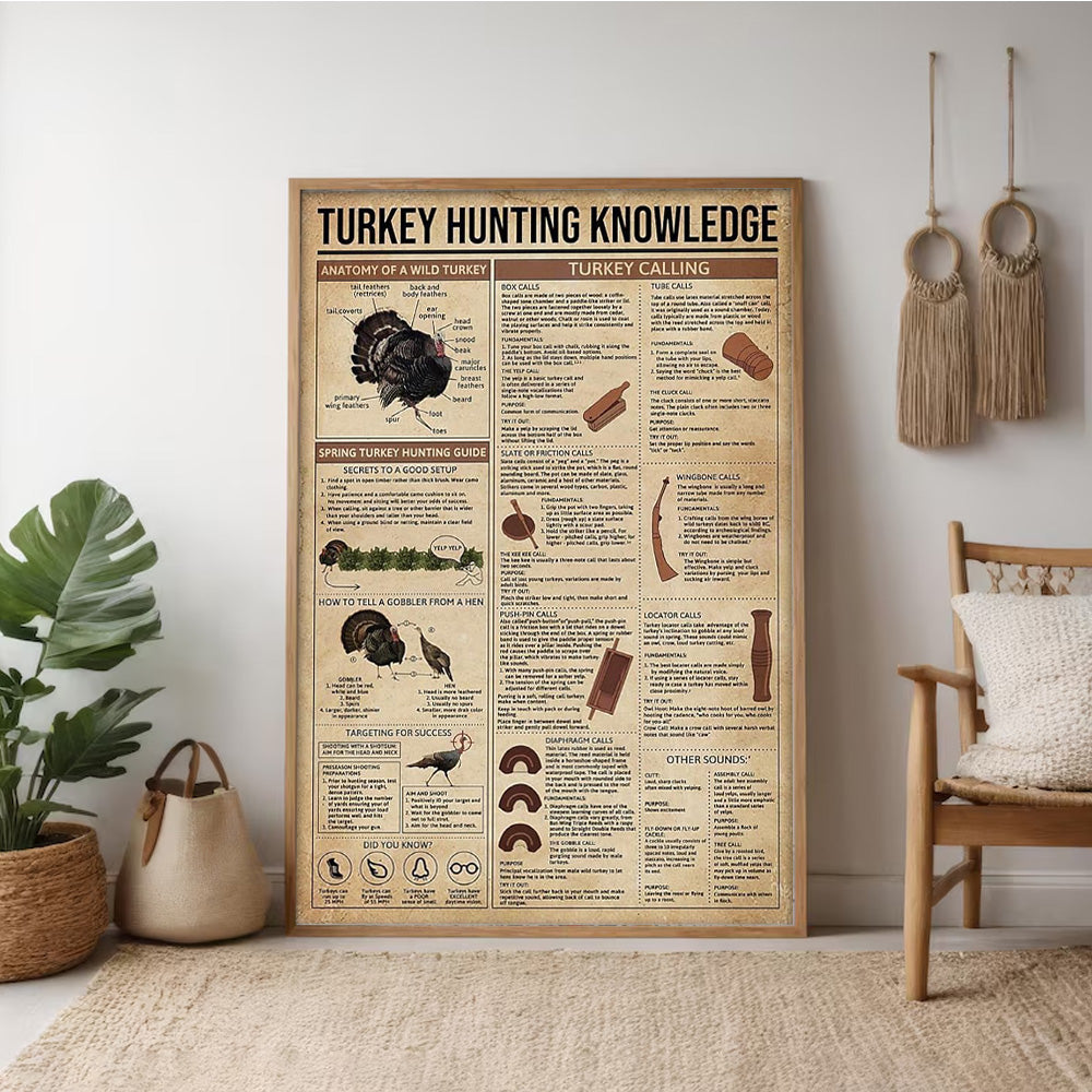 Turkey Calls & Hunting Tips Canvas – Wild Turkey Wall Art for Hunters & Country Homes , Poster for Outdoorsmen & Hunter Gifts