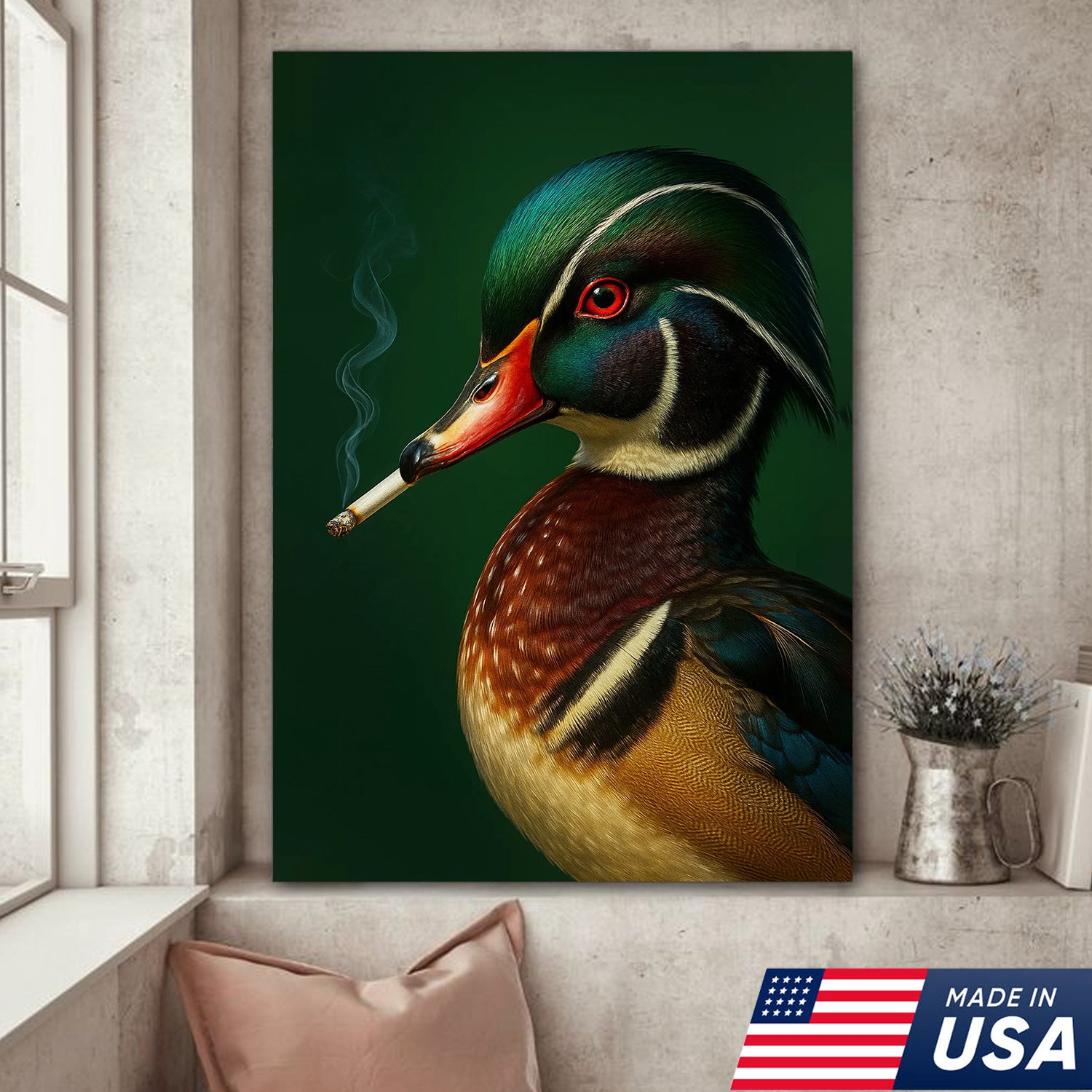 Wood Duck Wall Art Canvas - Vibrant Wildlife Cabin Decor - Unique Hunting Lodge Artwork